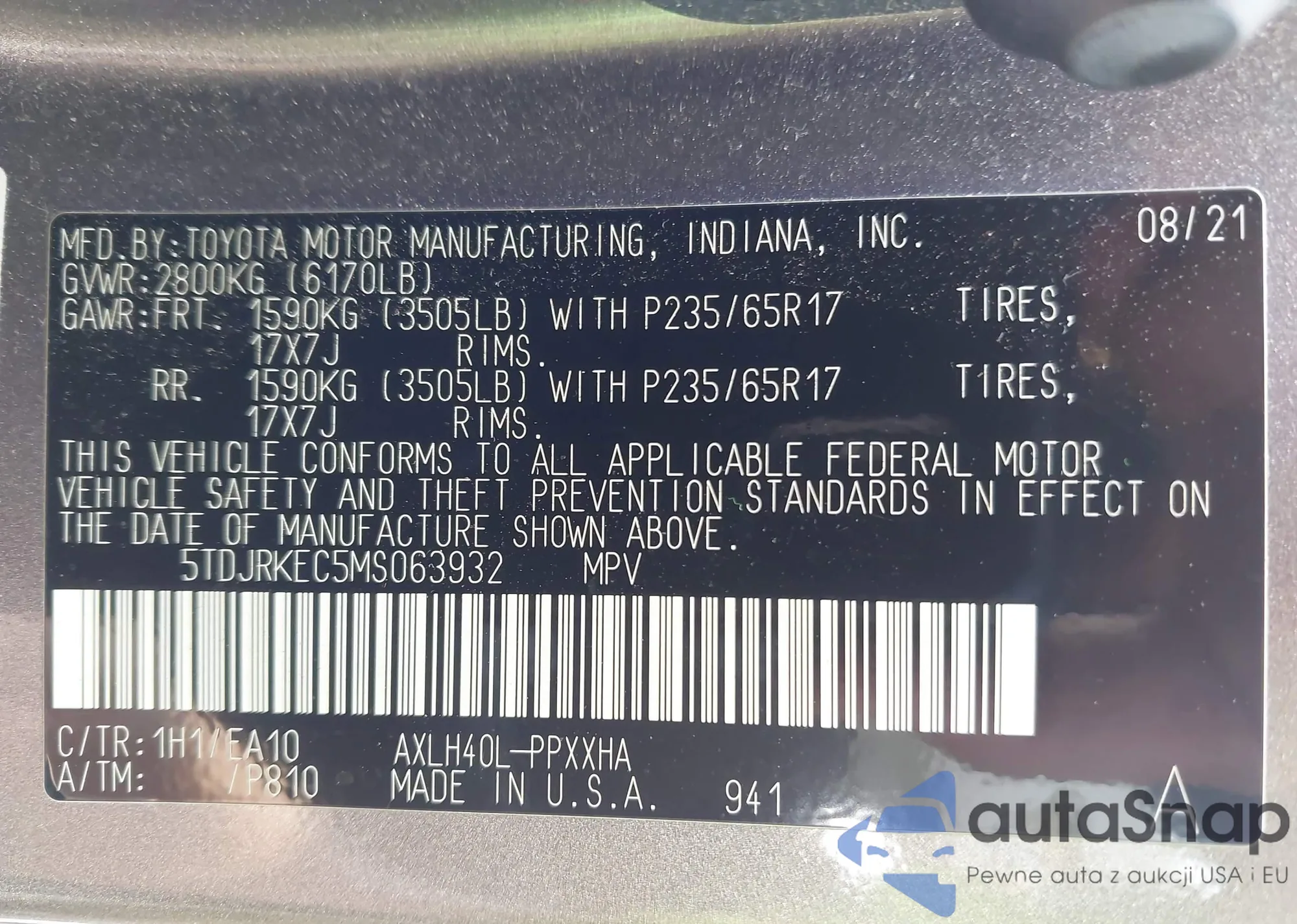 VIN: 5TDJRKEC5MS063932