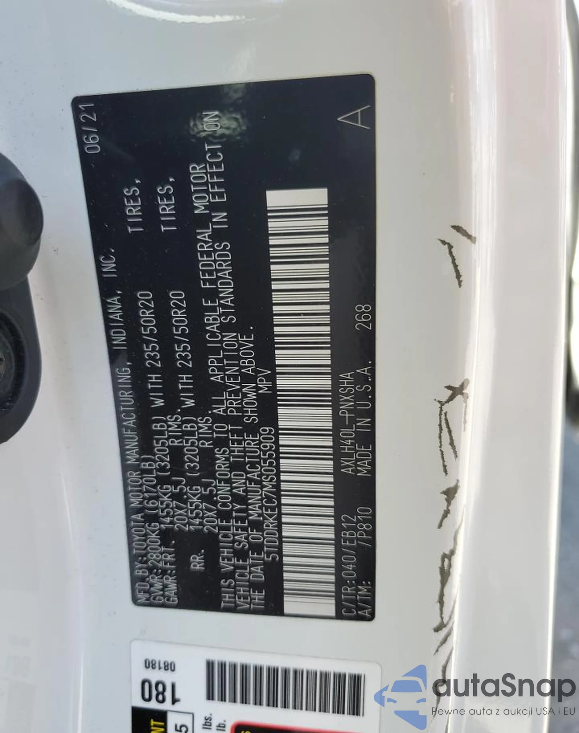 • VIN: 5TDDRKEC7MS055909