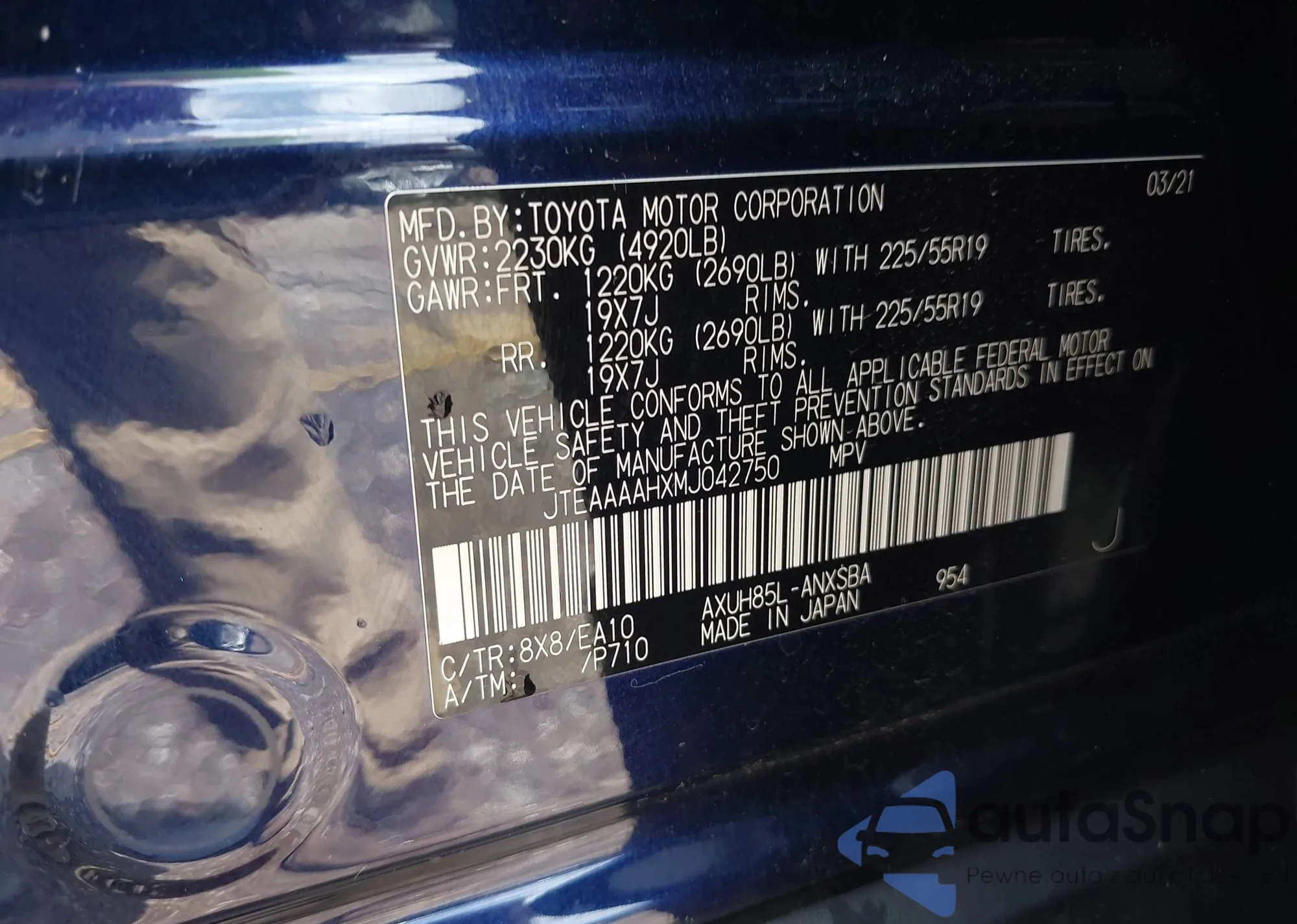 VIN: JTEAAAAHXMJ042750