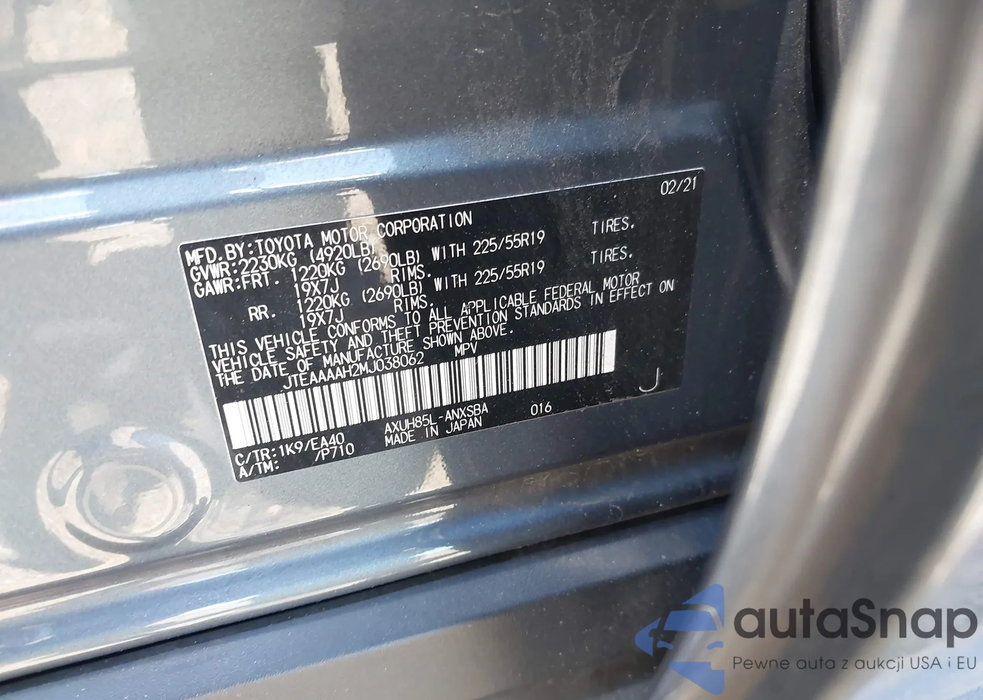 VIN: JTEAAAAH2MJ038062