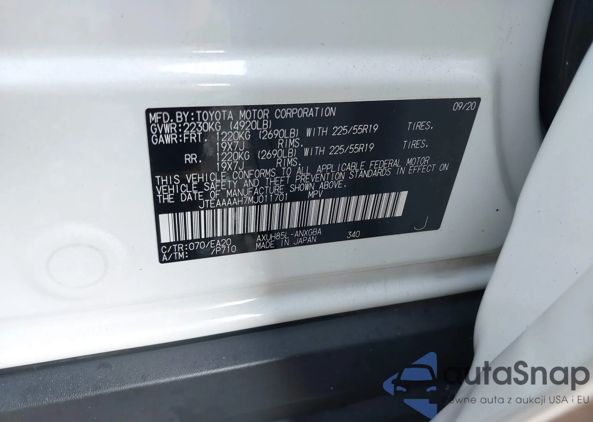 VIN: JTEAAAAH7MJ011701