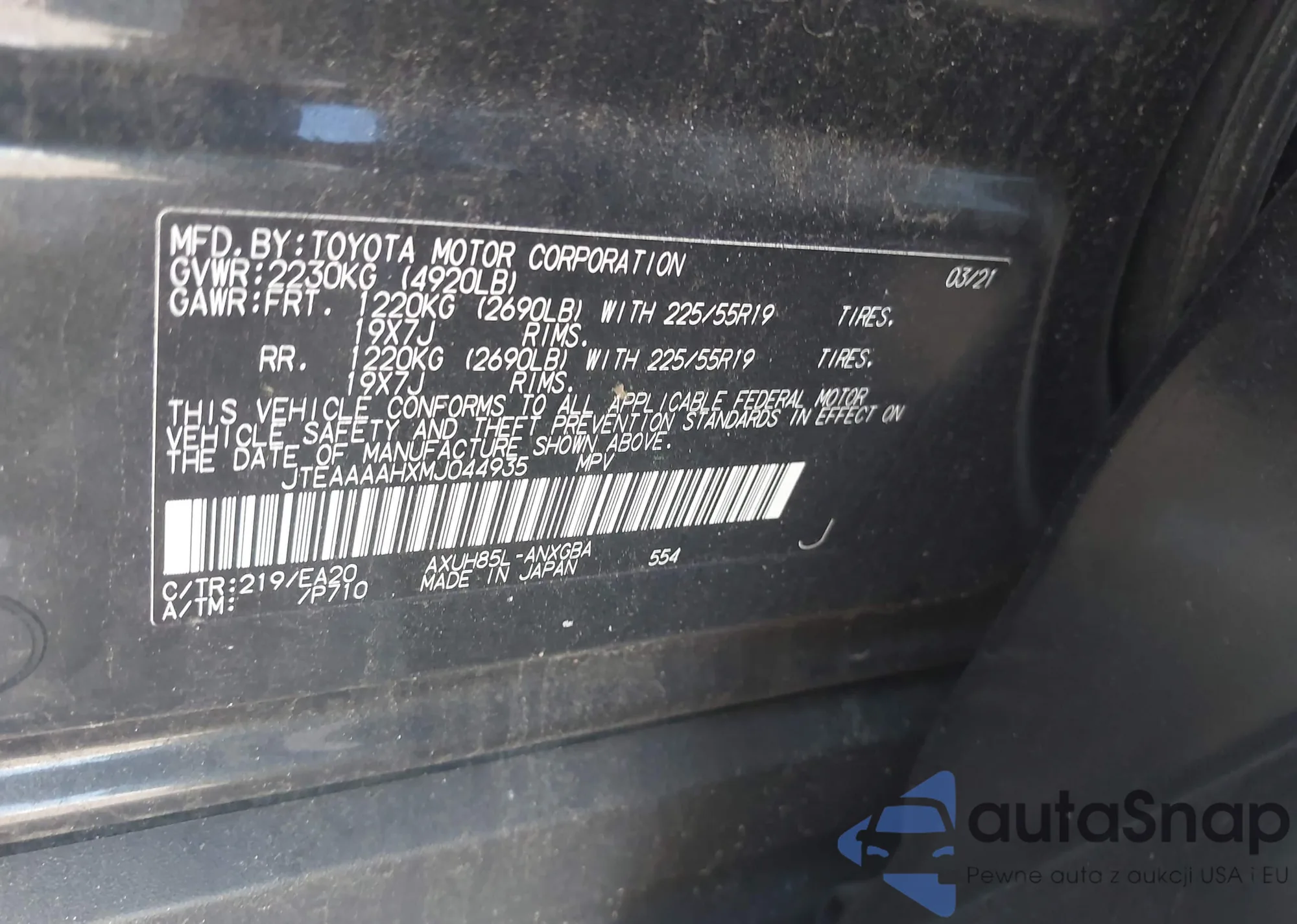 VIN: JTEAAAAHXMJ044935