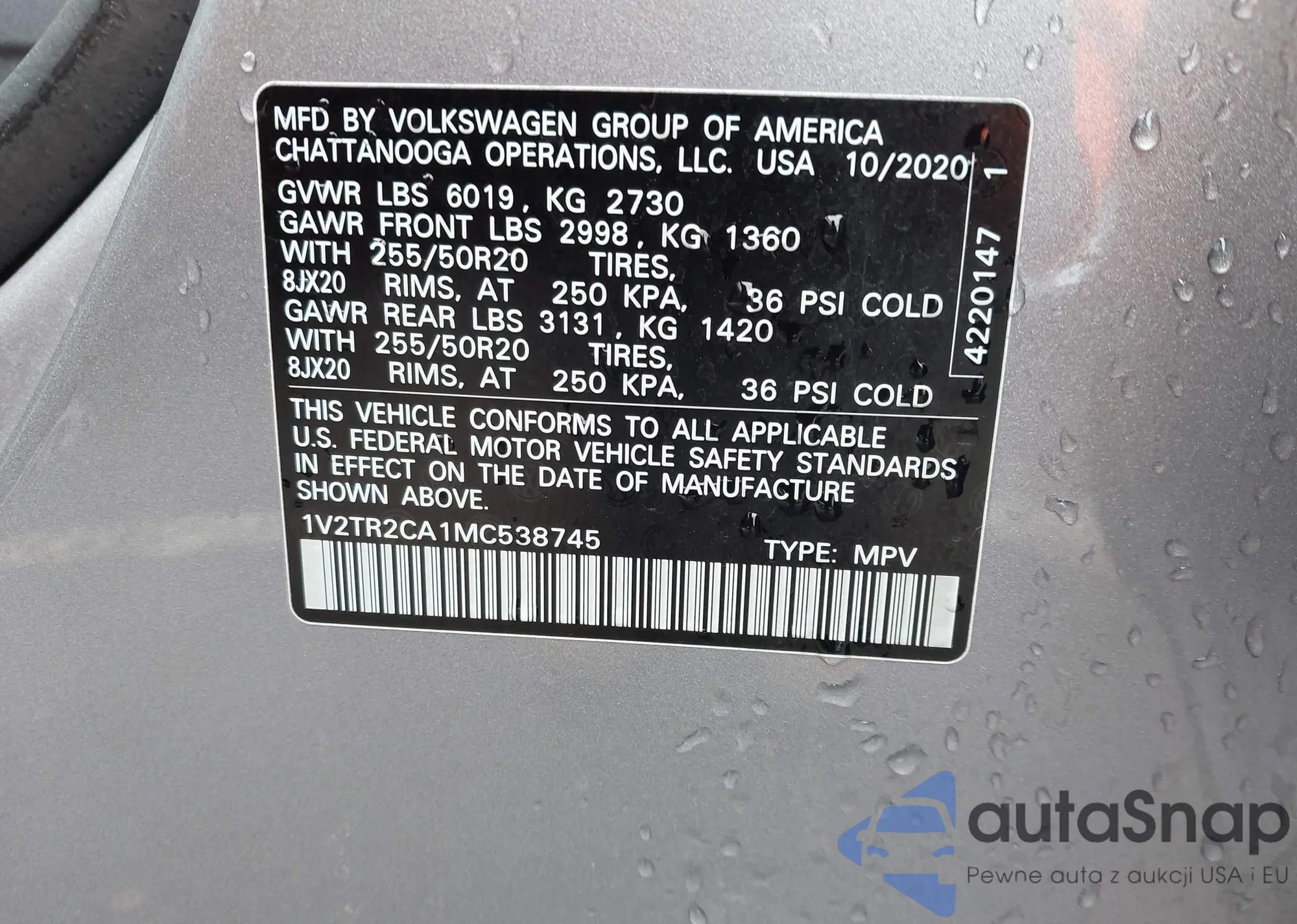 VIN: 1V2TR2CA1MC538745