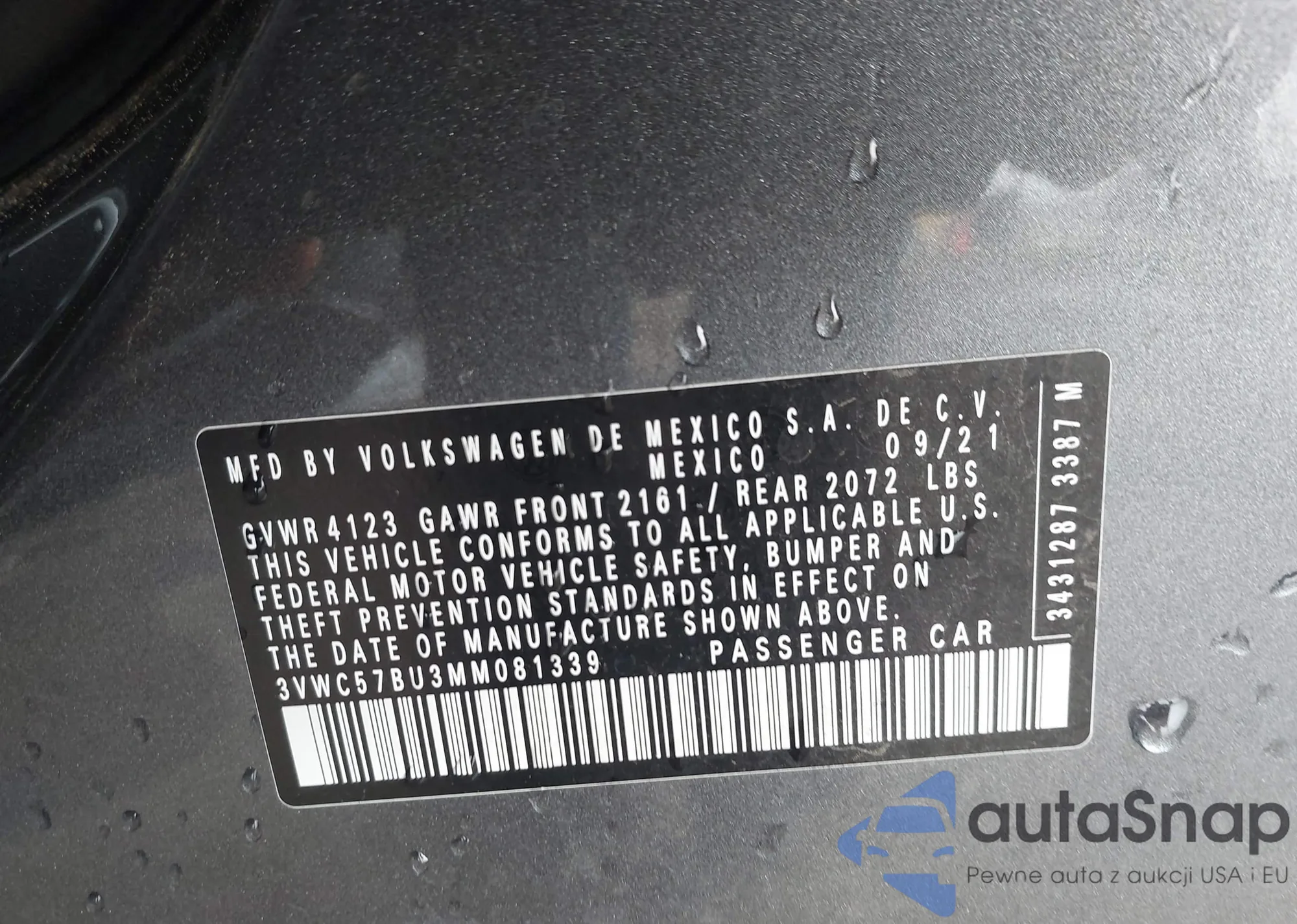 • VIN: 3VWC57BU3MM081339