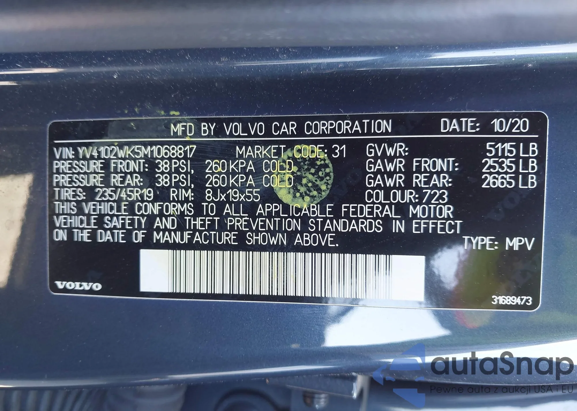 VIN: YV4102WK5M1068817