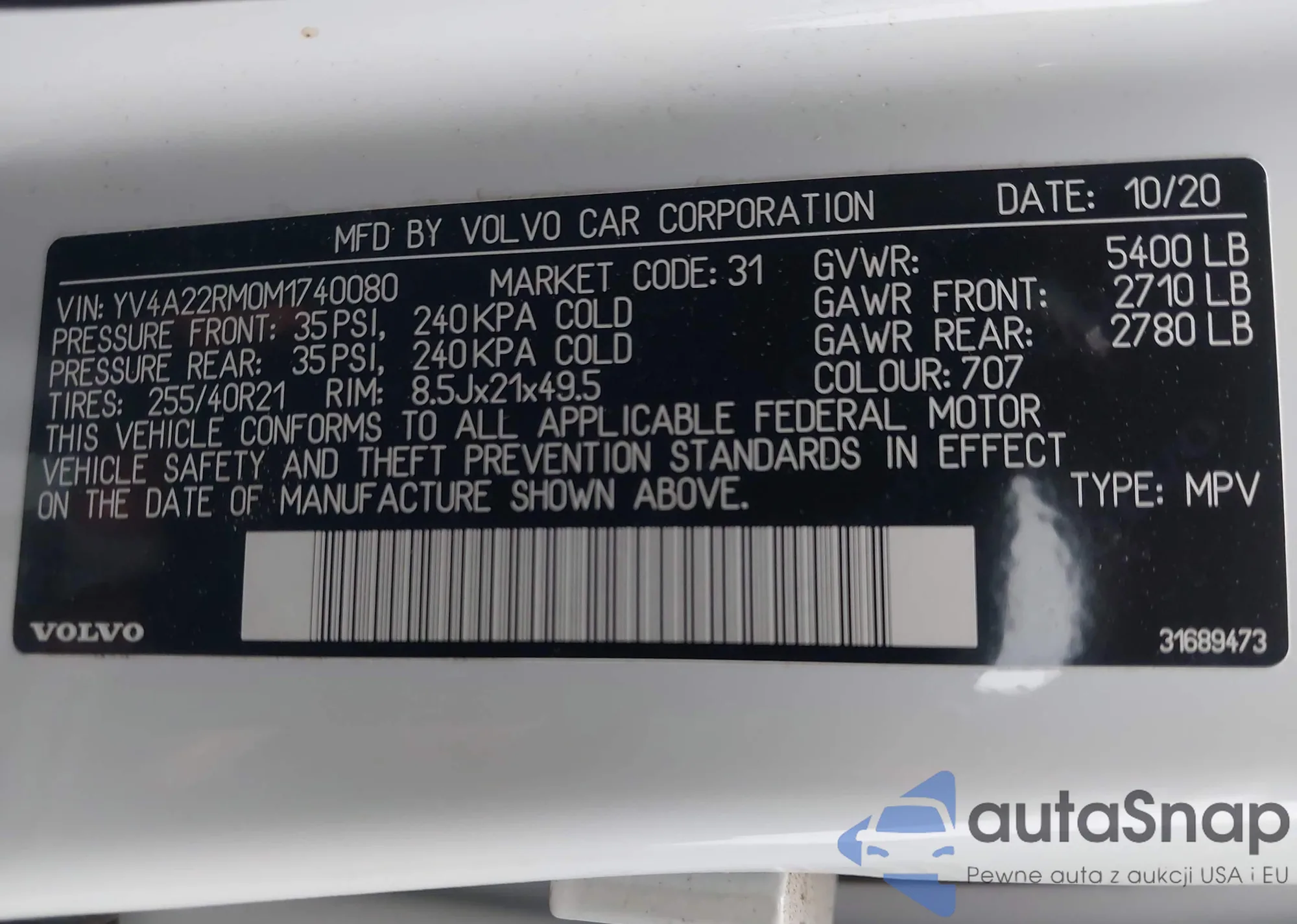 • VIN: YV4A22RM0M1740080