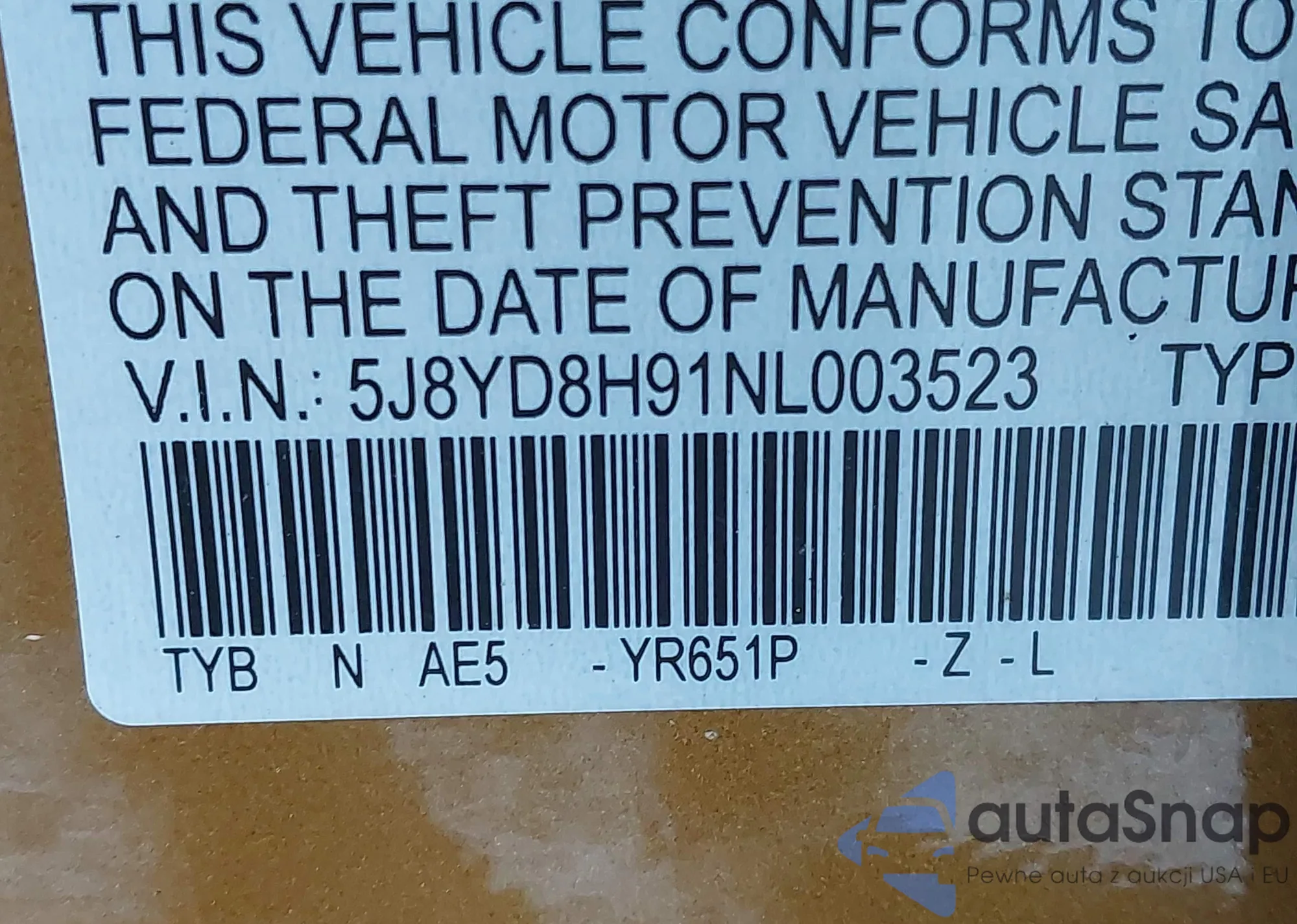 VIN: 5J8YD8H91NL003523