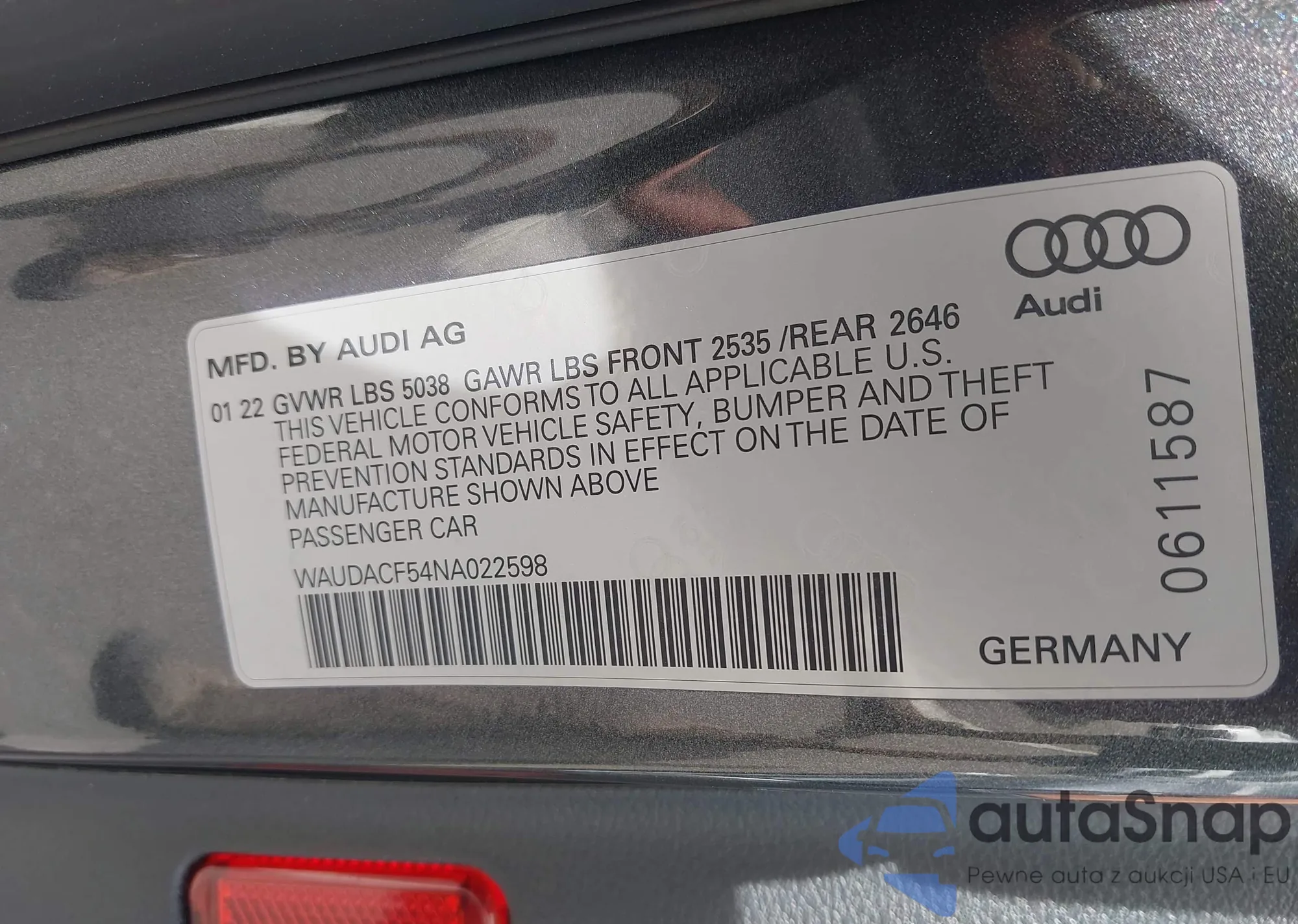 VIN: WAUDACF54NA022598