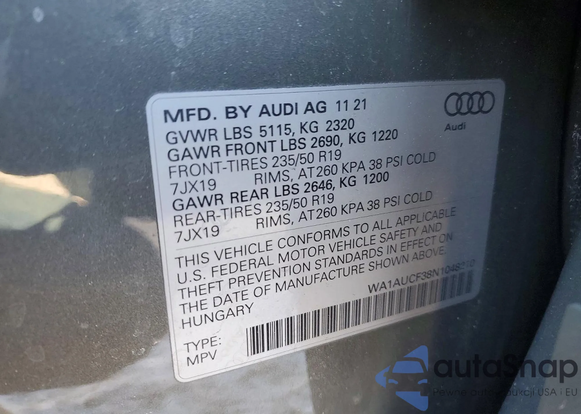 VIN: WA1AUCF38N1048210