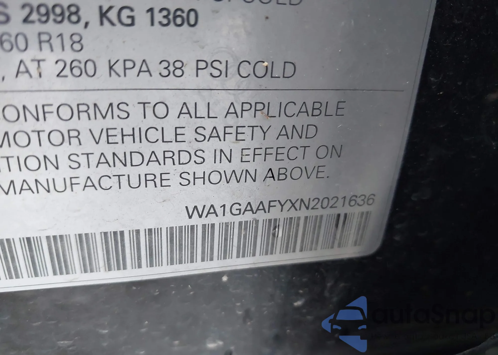 • VIN: WA1GAAFYXN2021636