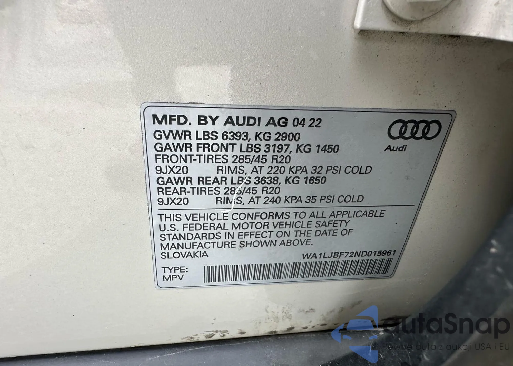VIN: WA1LJBF72ND015961