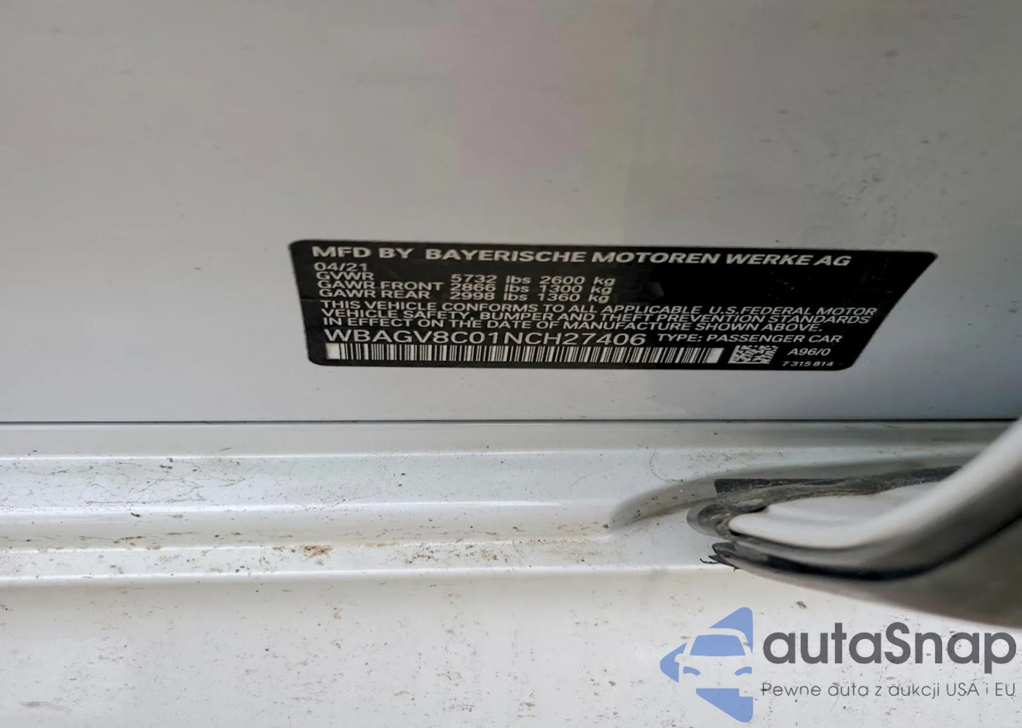 • VIN: WBAGV8C01NCH27406