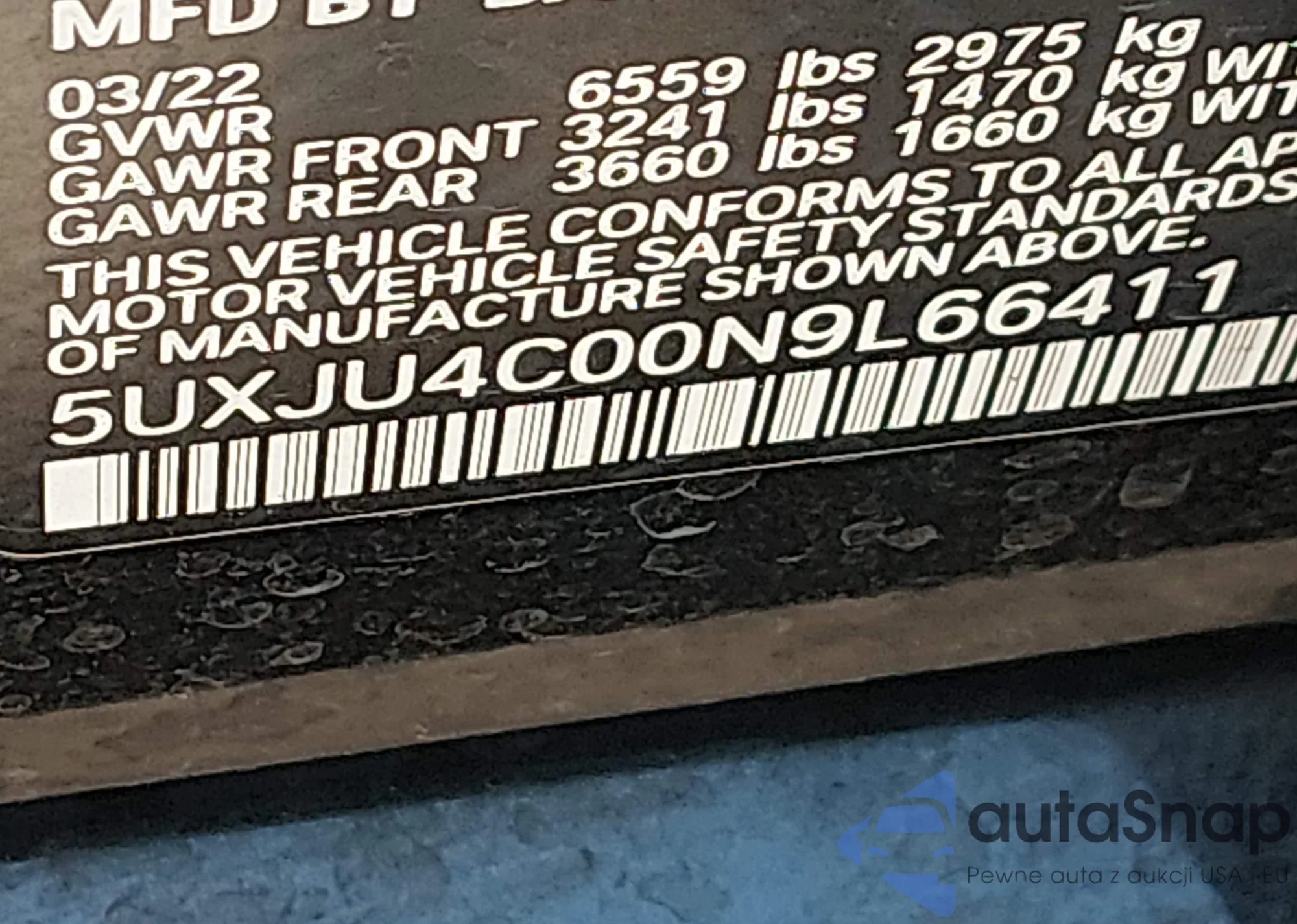 • VIN: 5UXJU4C00N9L66411