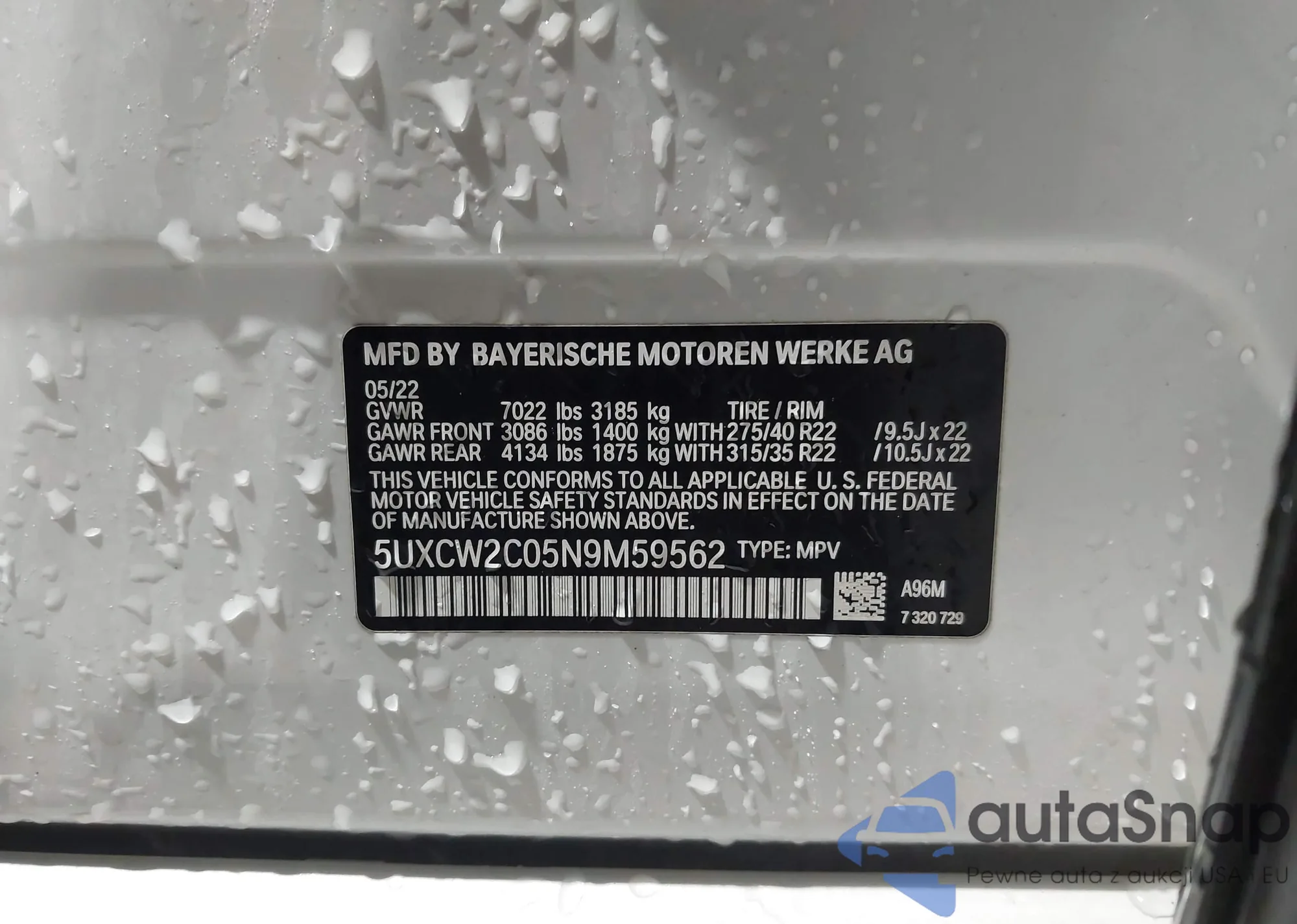 VIN: 5UXCW2C05N9M59562