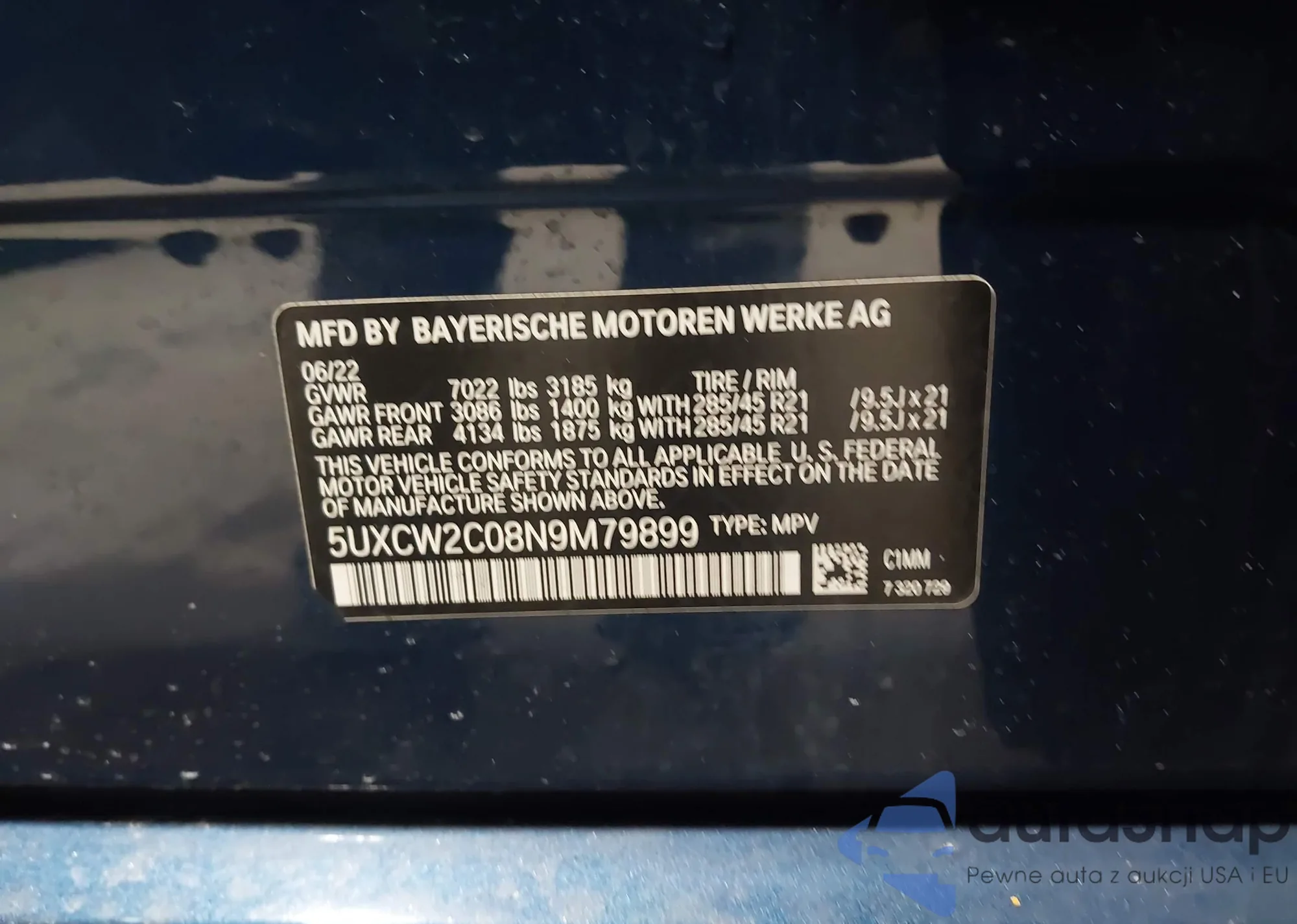 • VIN: 5UXCW2C08N9M79899