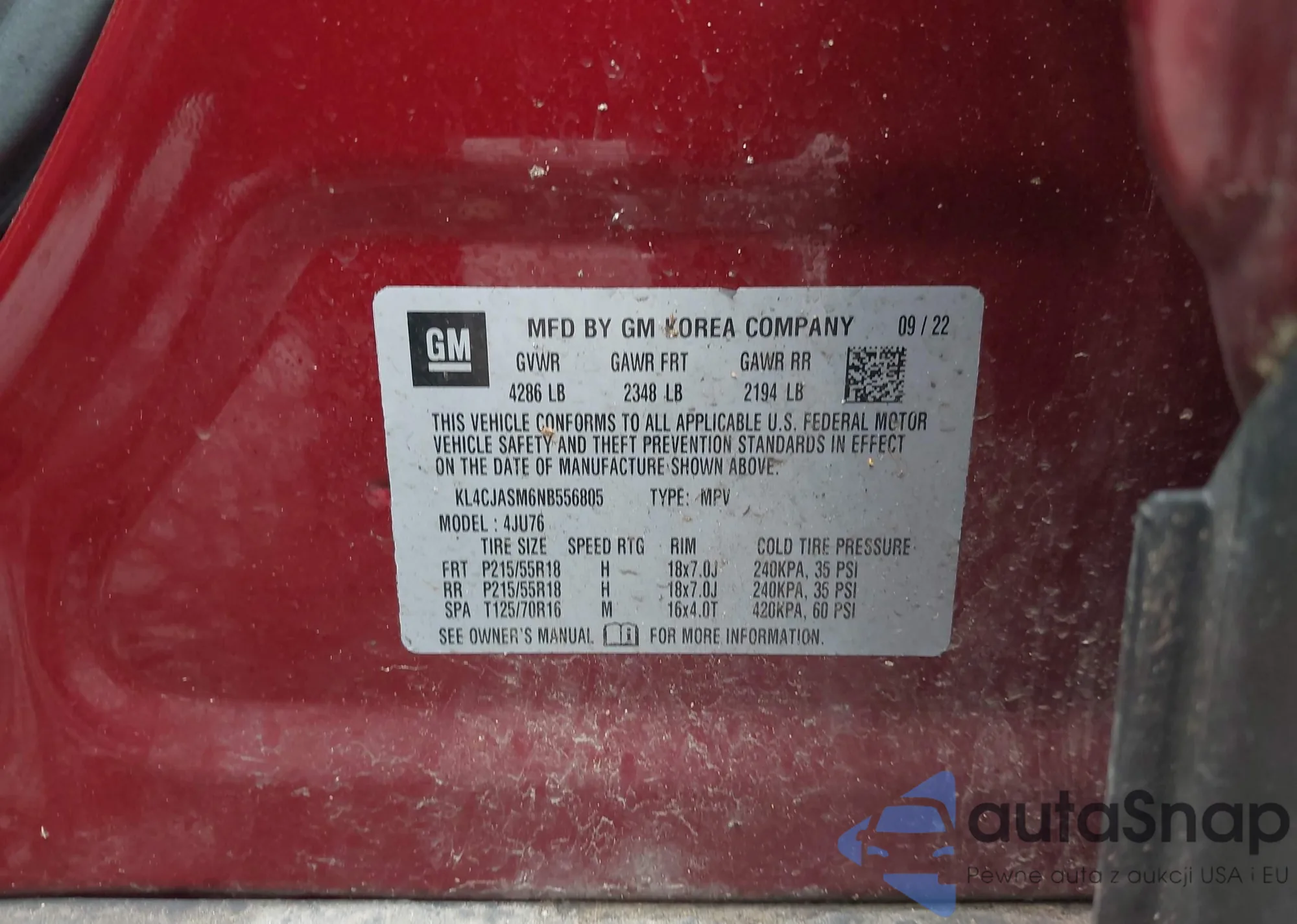 VIN: KL4CJASM6NB556805