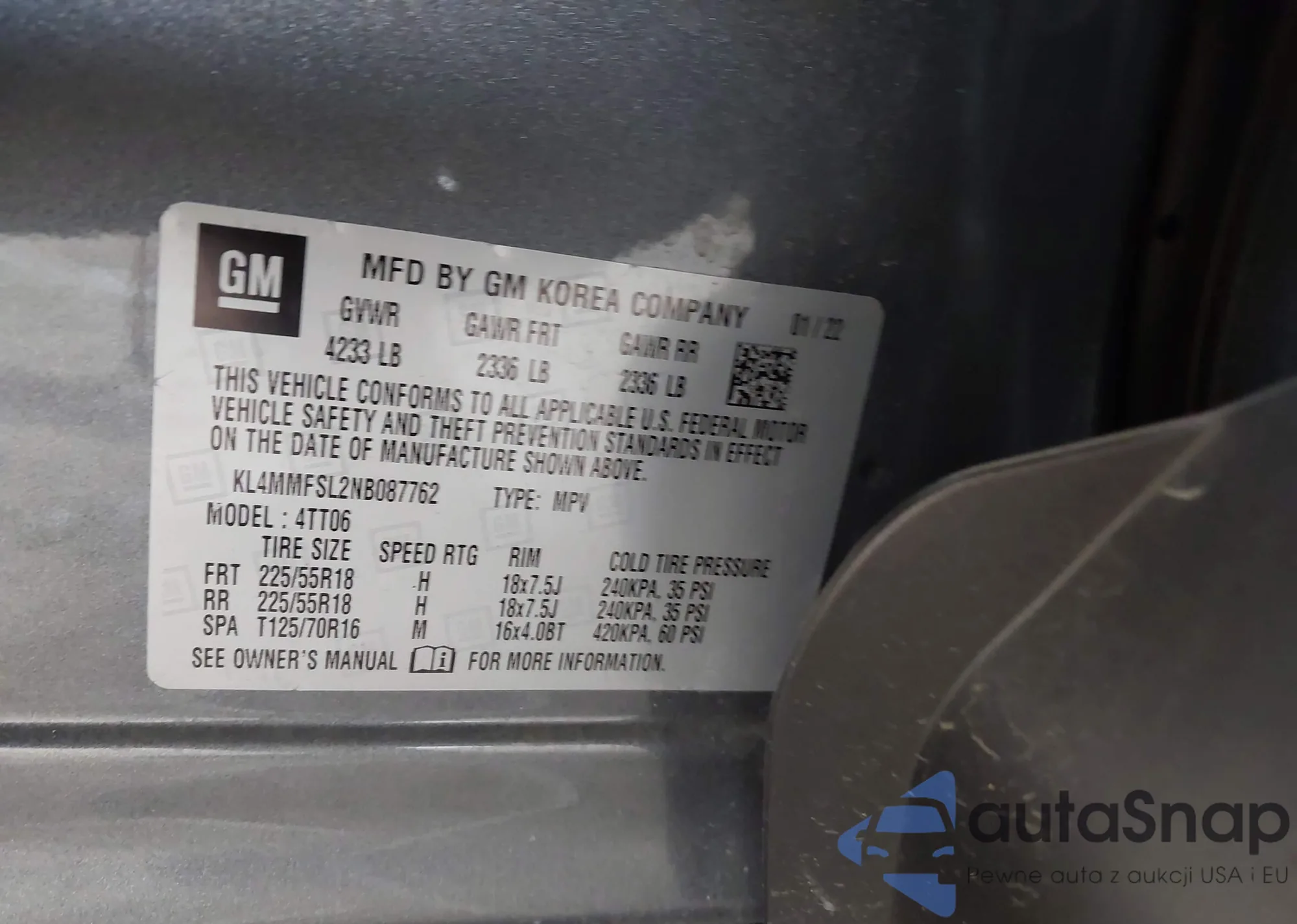VIN: KL4MMFSL2NB087762