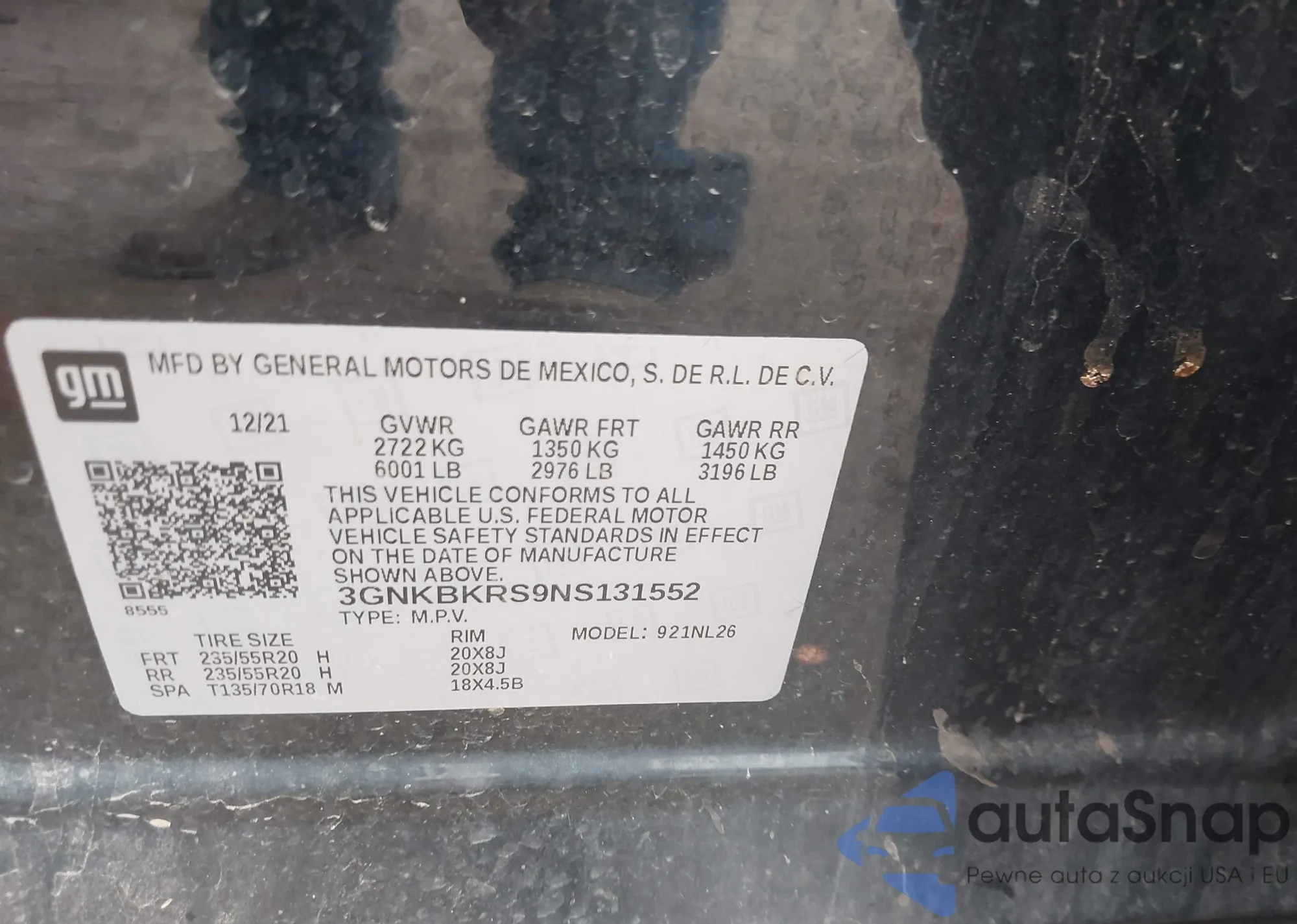 VIN: 3GNKBKRS9NS131552