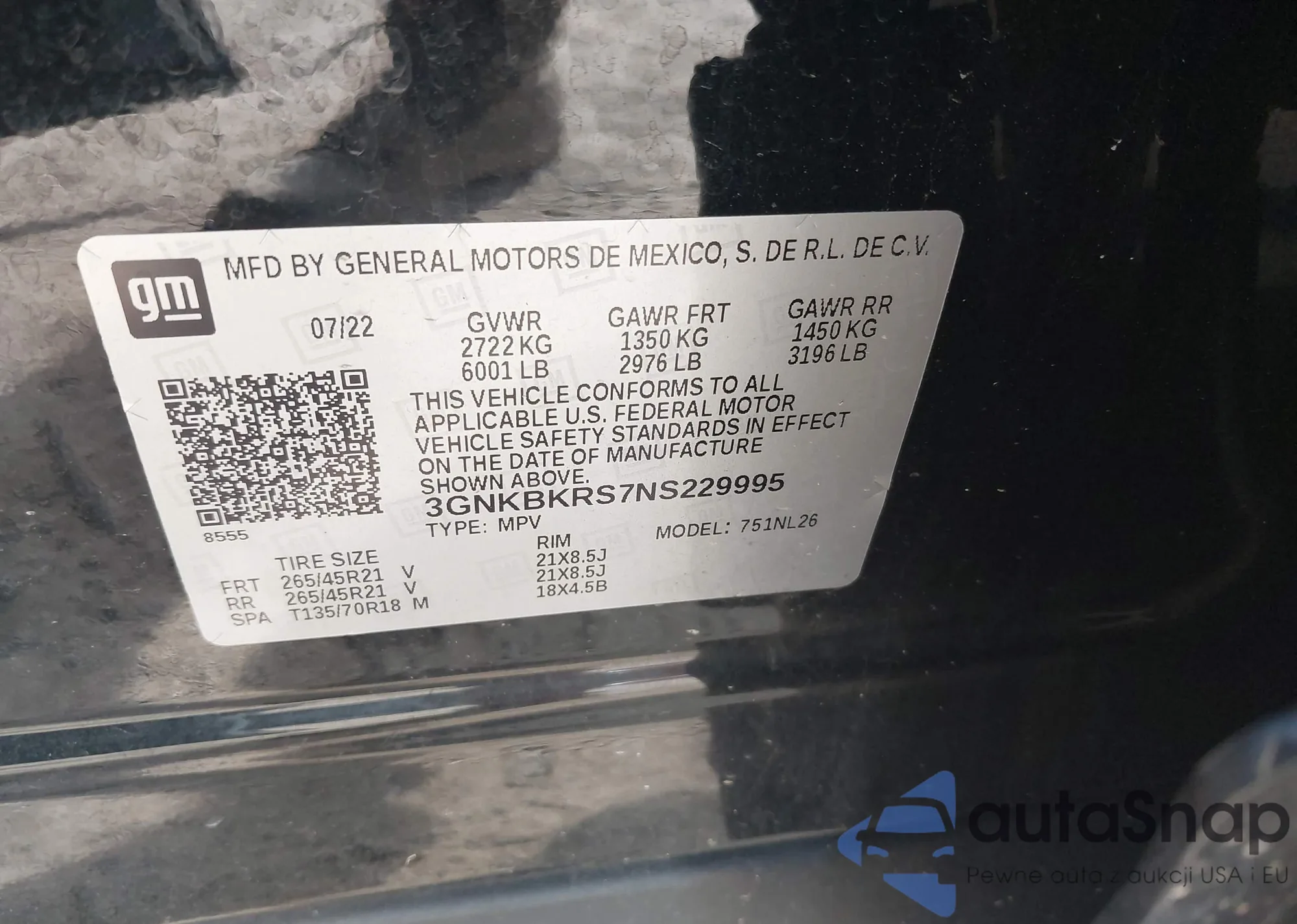 VIN: 3GNKBKRS7NS229995