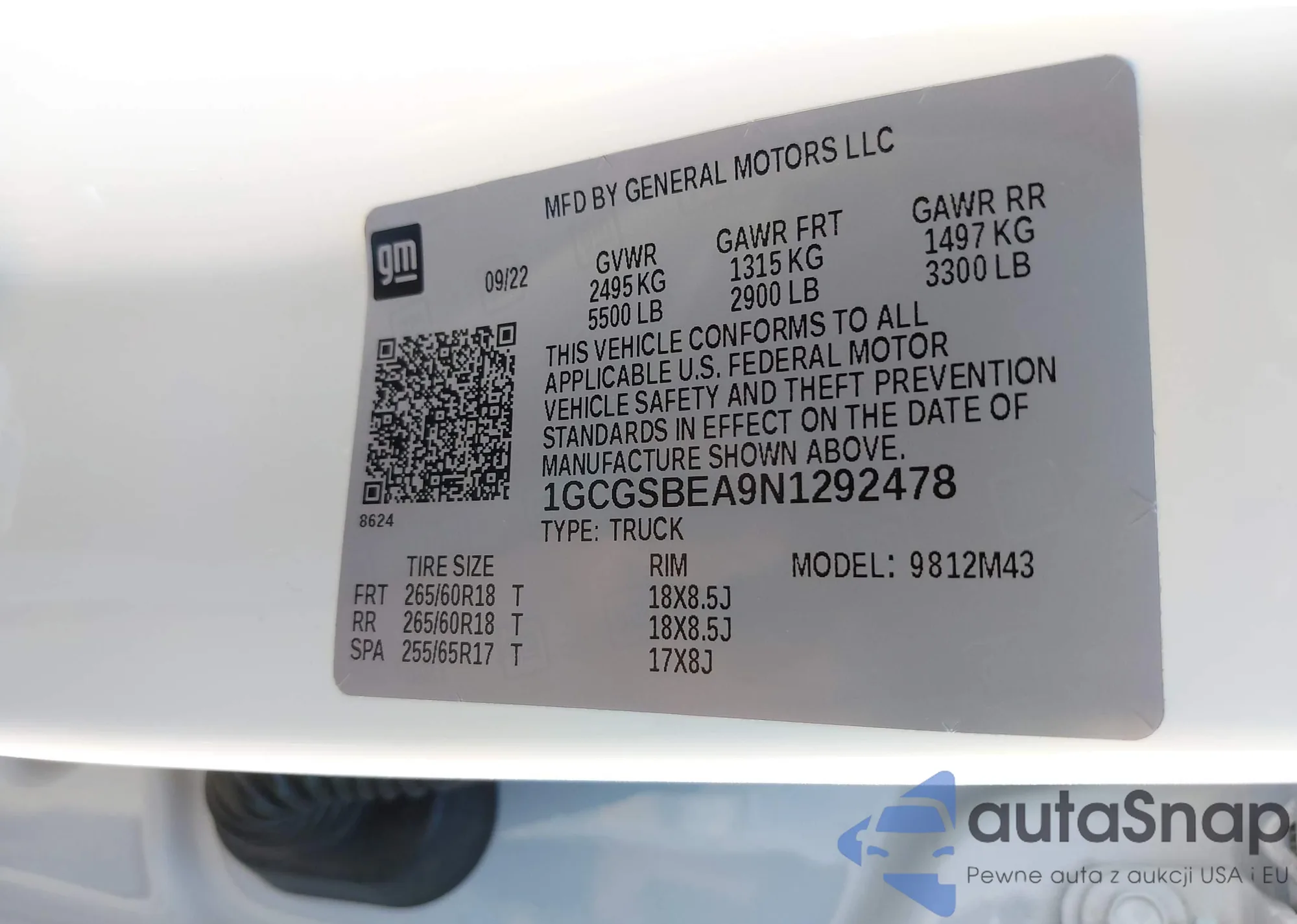 VIN: 1GCGSBEA9N1292478