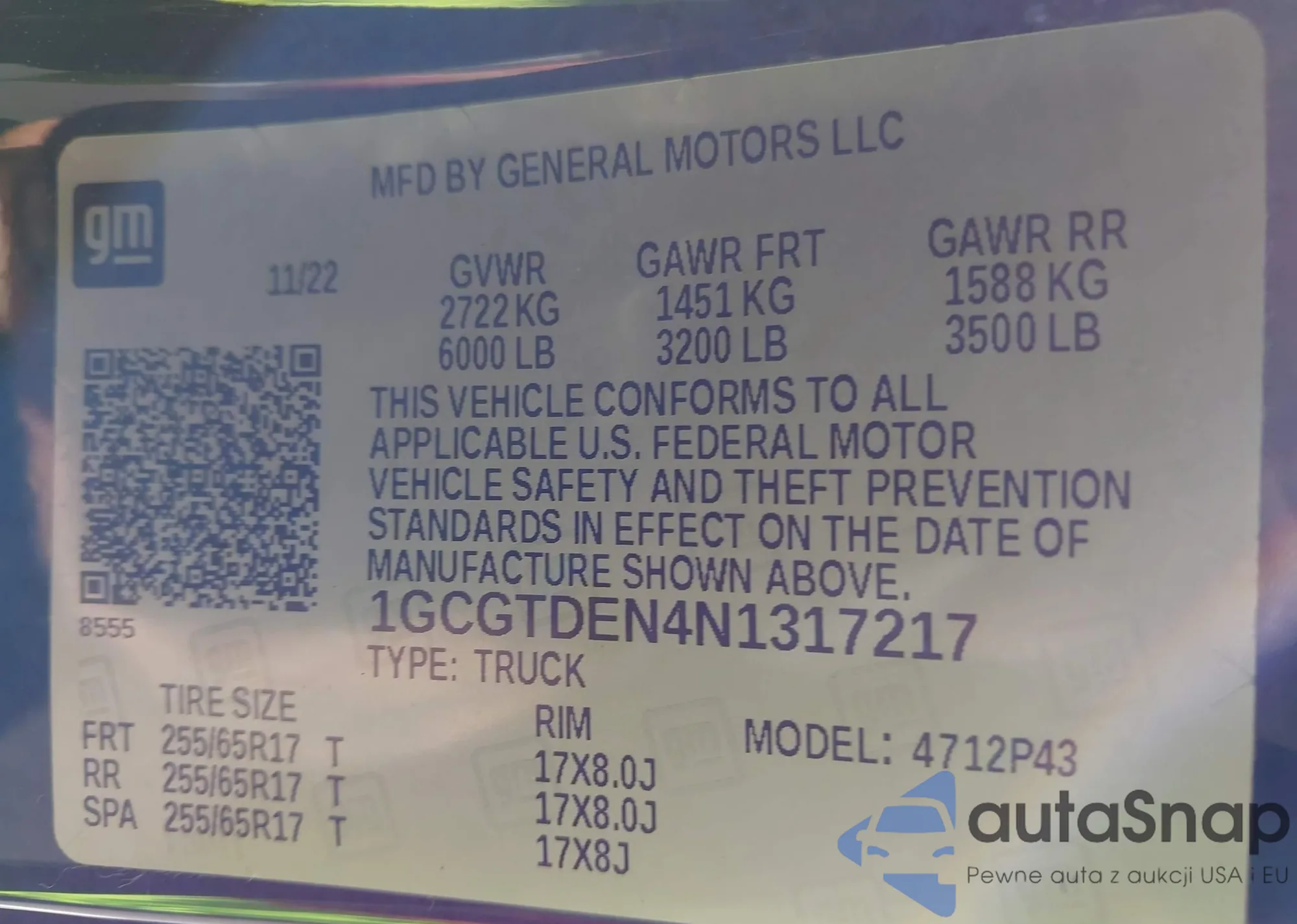 VIN: 1GCGTDEN4N1317217