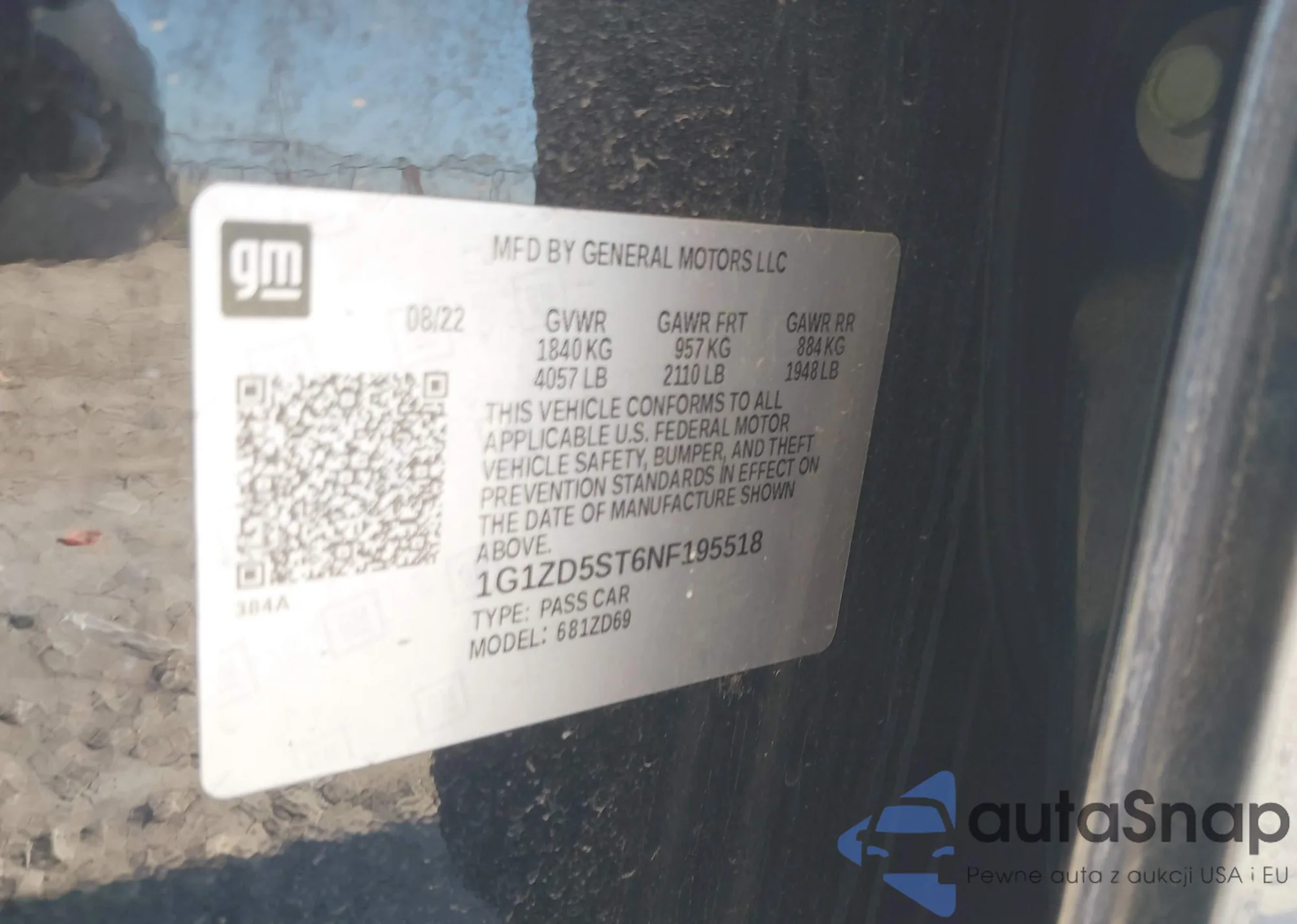 • VIN: 1G1ZD5ST6NF195518