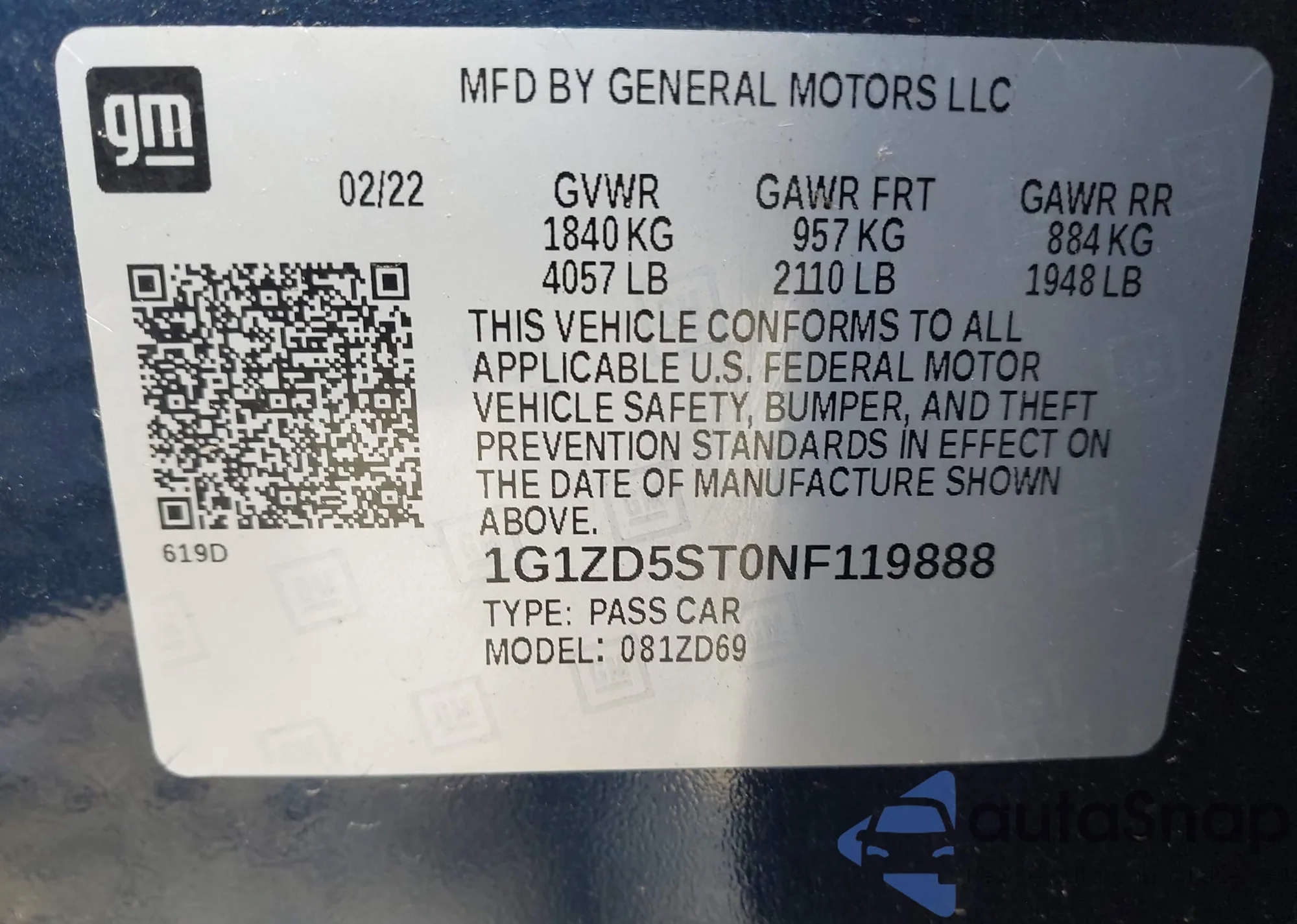 VIN: 1G1ZD5ST0NF119888