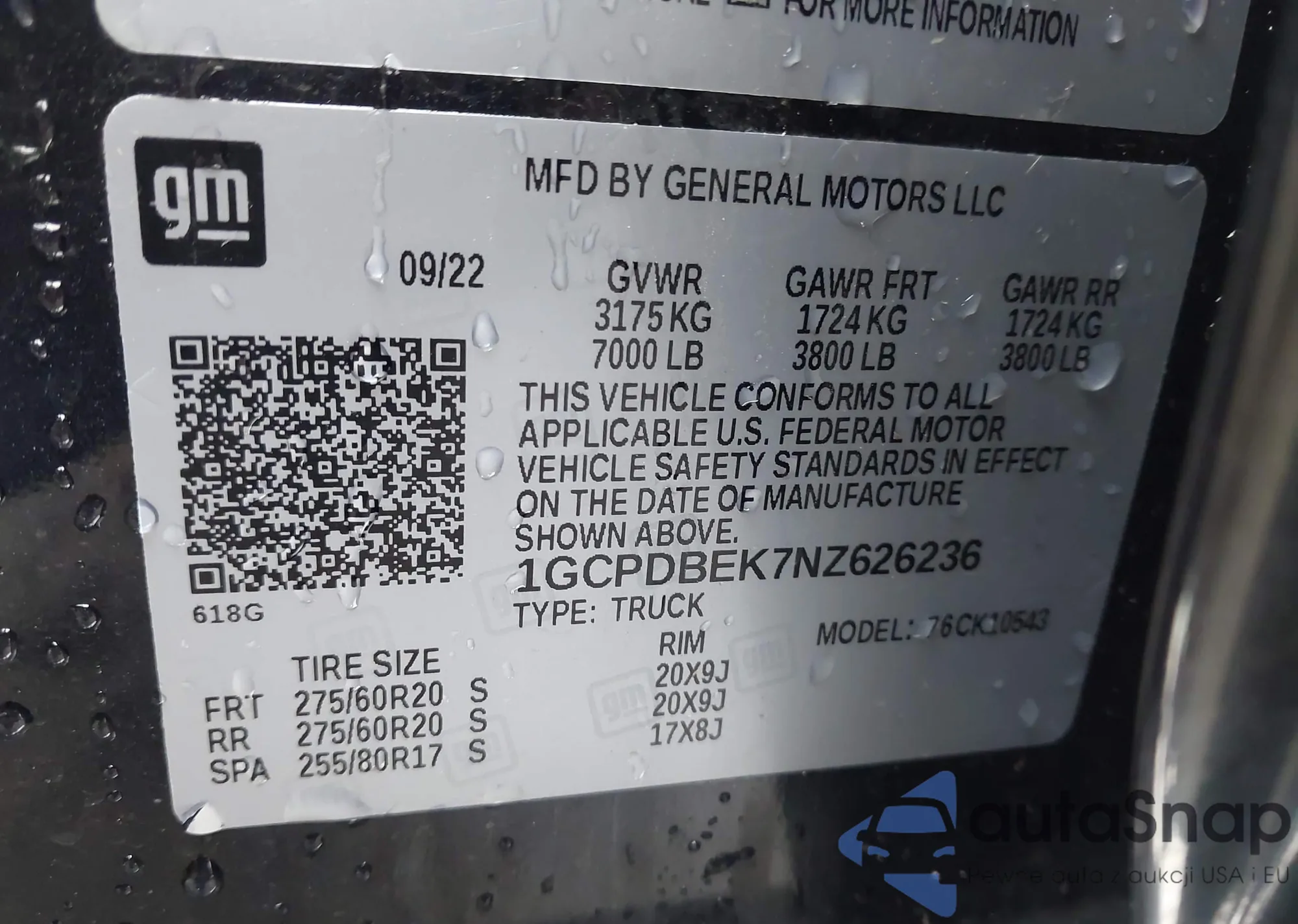 Samochód Chevrolet Silverado 2022 (VIN 1GCPDBEK7NZ626236) nie był wcześniej licytowany. Dokumenty są czyste, przebieg odpowiada lub jest niższy niż średnia rynku. Sprzedaje go firma ubezpieczeniowa – polecamy zakup. Dostawa do portu zajmie ok. 6–8 tygodni.