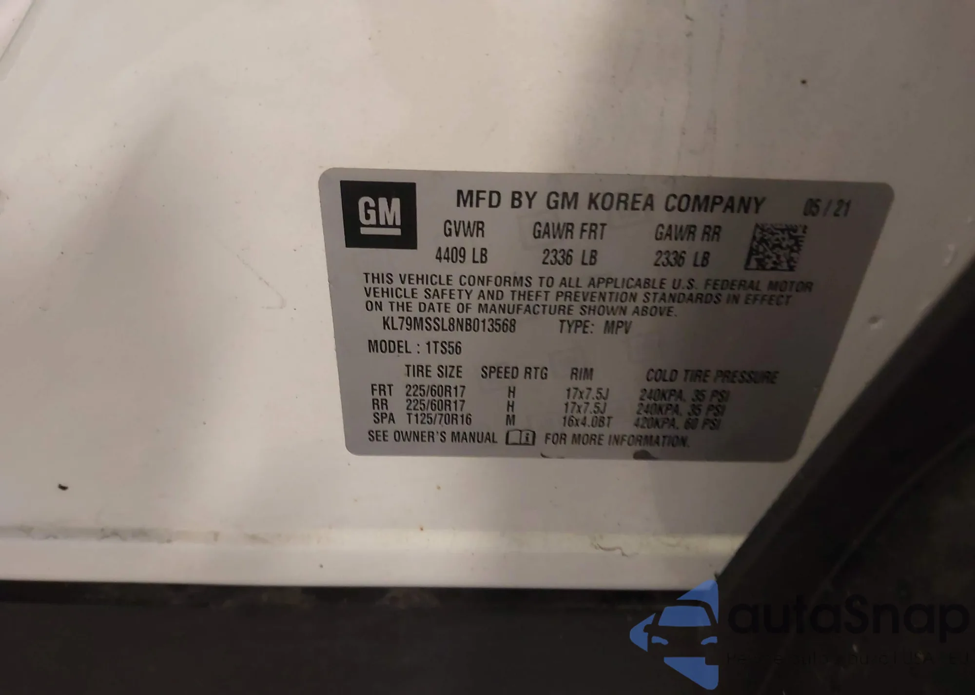 VIN: KL79MSSL8NB013568