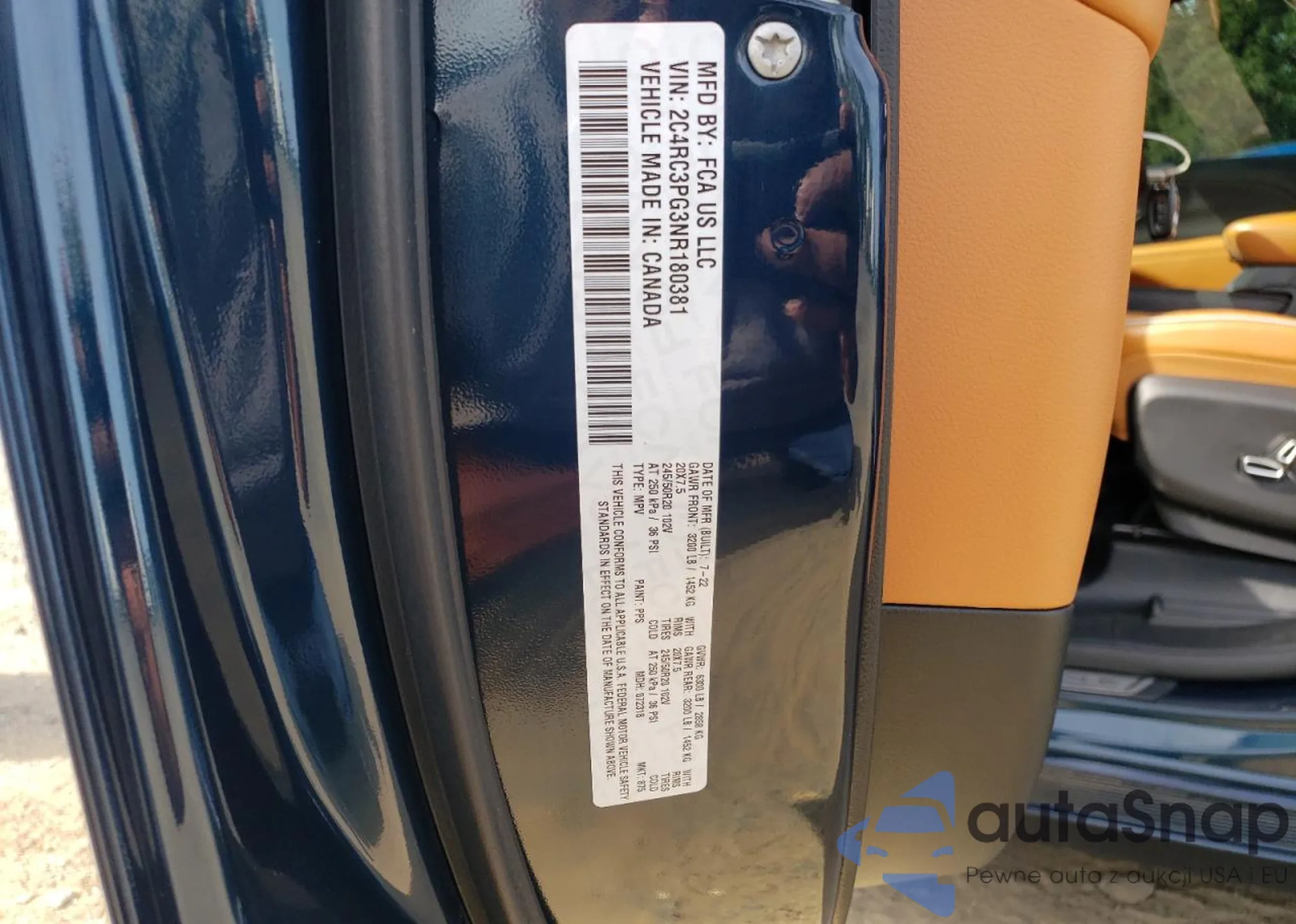 Samochód Chrysler Pacifica 2022 (VIN XC4RC3PG3NR180381) sprzedaje go niezweryfikowany sprzedawca. Zalecamy raport Carfax i potwierdzenie możliwości rejestracji pojazdu przed zakupem.