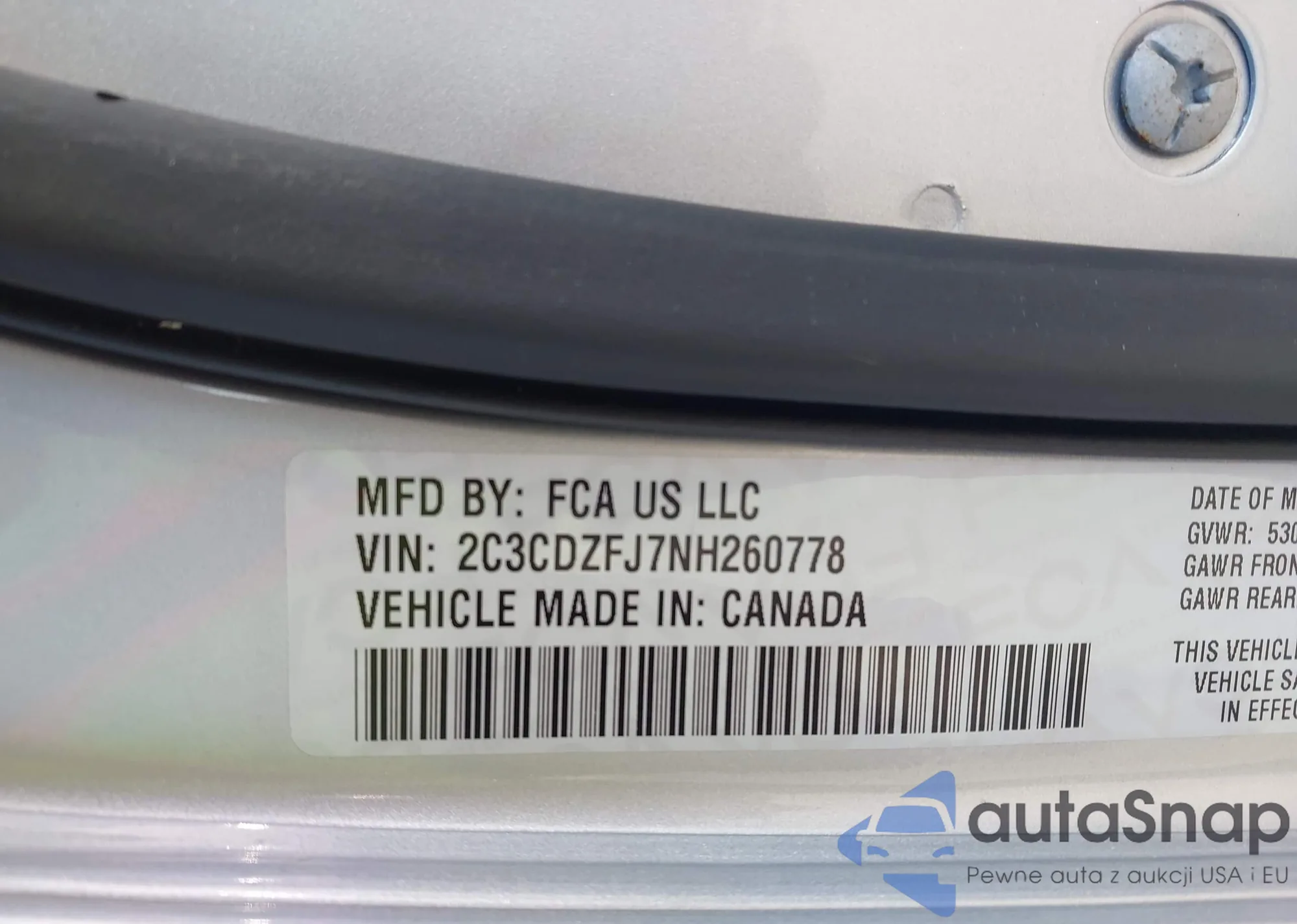 • VIN: 2C3CDZFJ7NH260778
