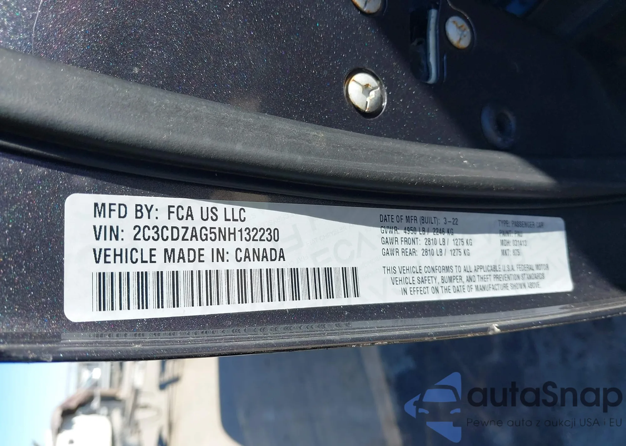 • VIN: 2C3CDZAG5NH132230