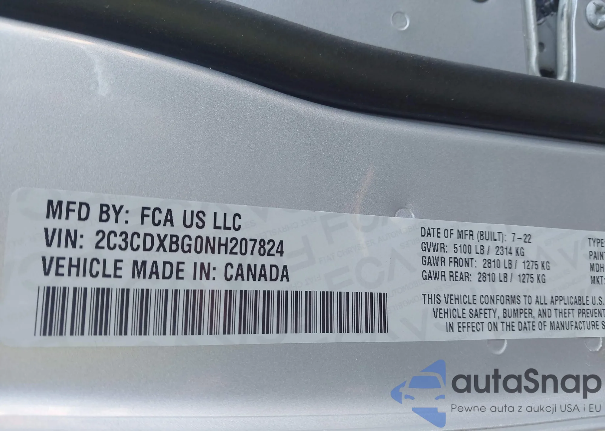 Samochód Dodge Charger 2022 (VIN 2C3CDXBG0NH207824) nie był wcześniej licytowany. Dokumenty są czyste, przebieg odpowiada lub jest niższy niż średnia rynku. Sprzedaje go firma ubezpieczeniowa – polecamy zakup. Dostawa do portu zajmie ok. 6–8 tygodni.