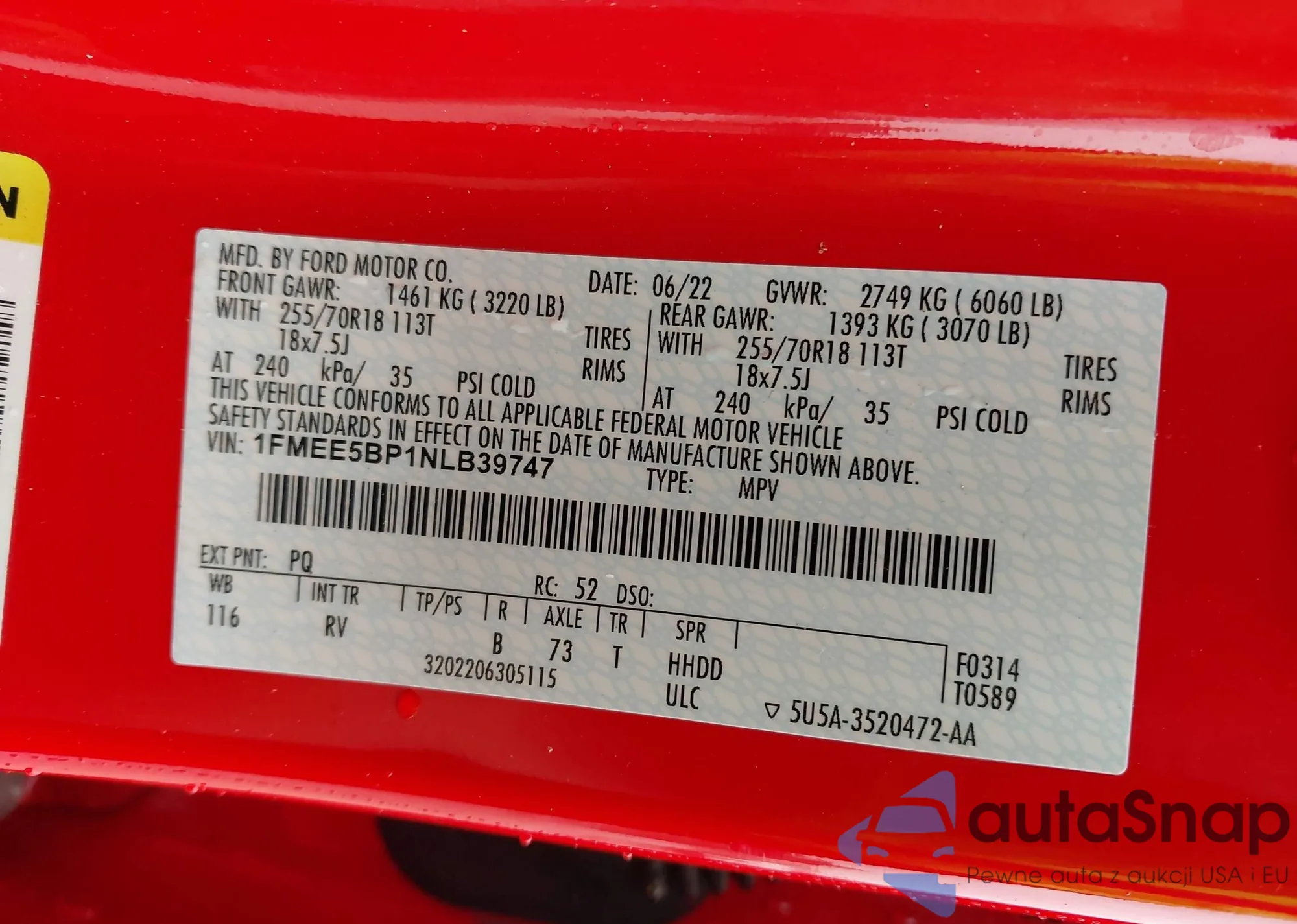 VIN: 1FMEE5BP1NLB39747