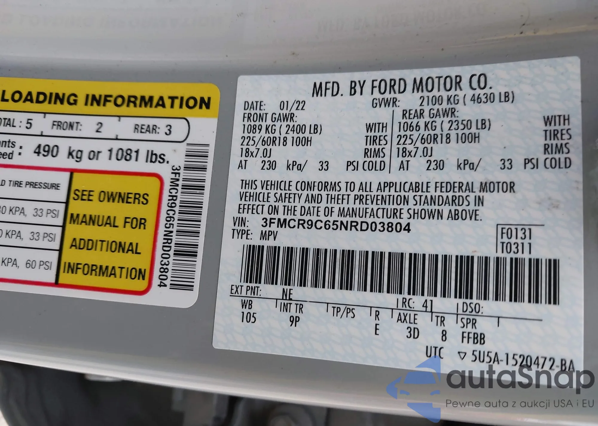 VIN: 3FMCR9C65NRD03804