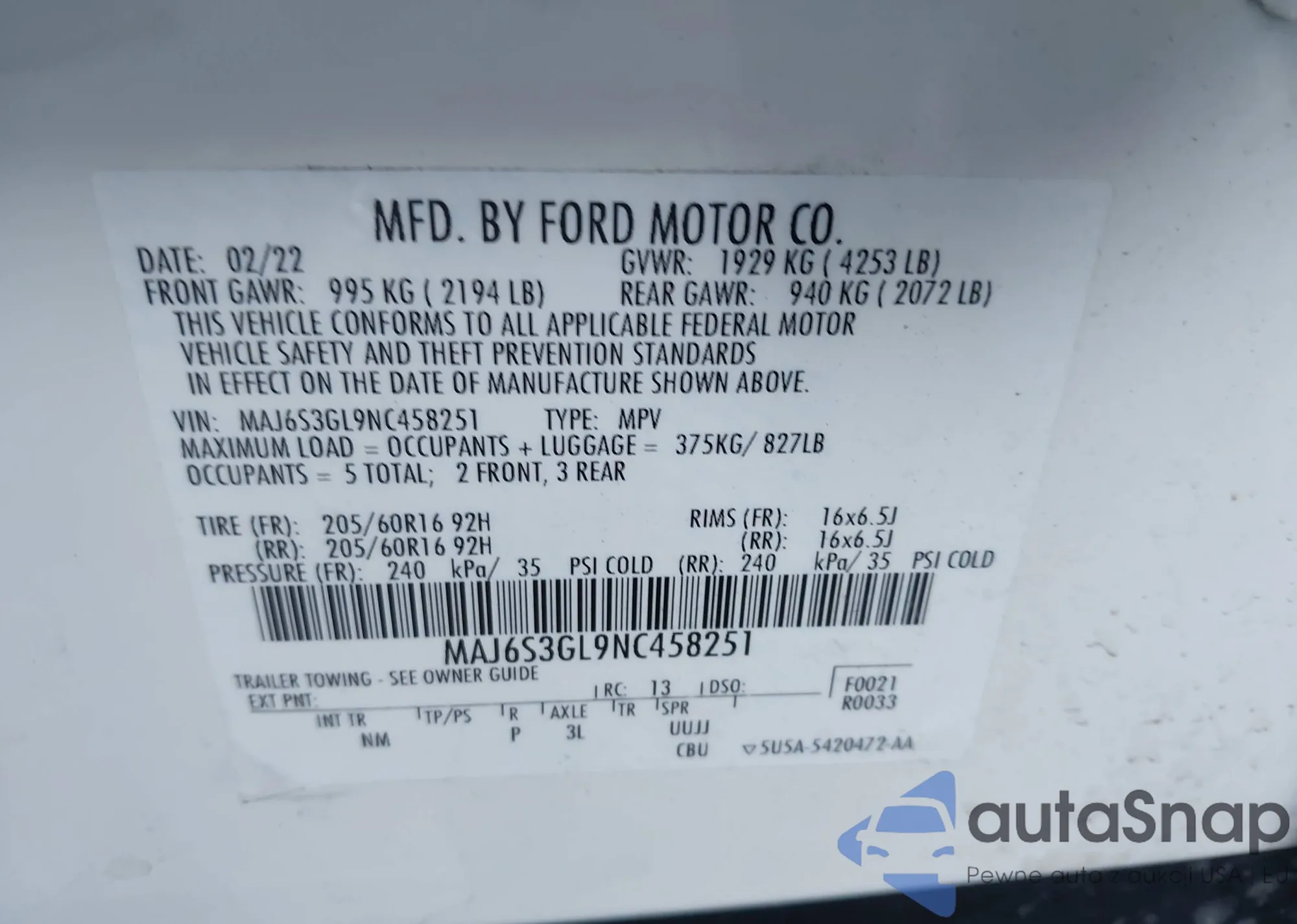 VIN: MAJ6S3GL9NC458251