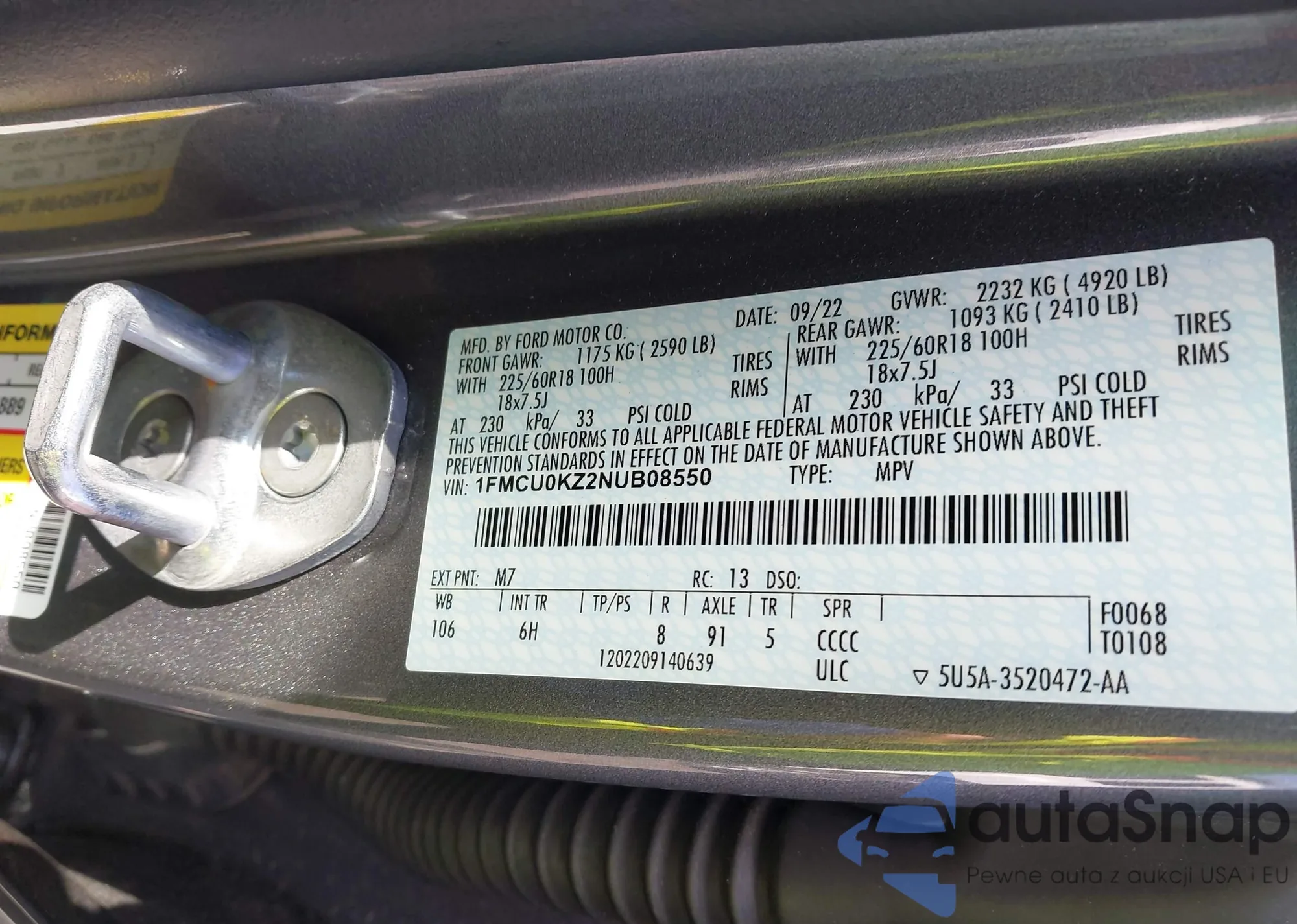 VIN: 1FMCU0KZ2NUB08550