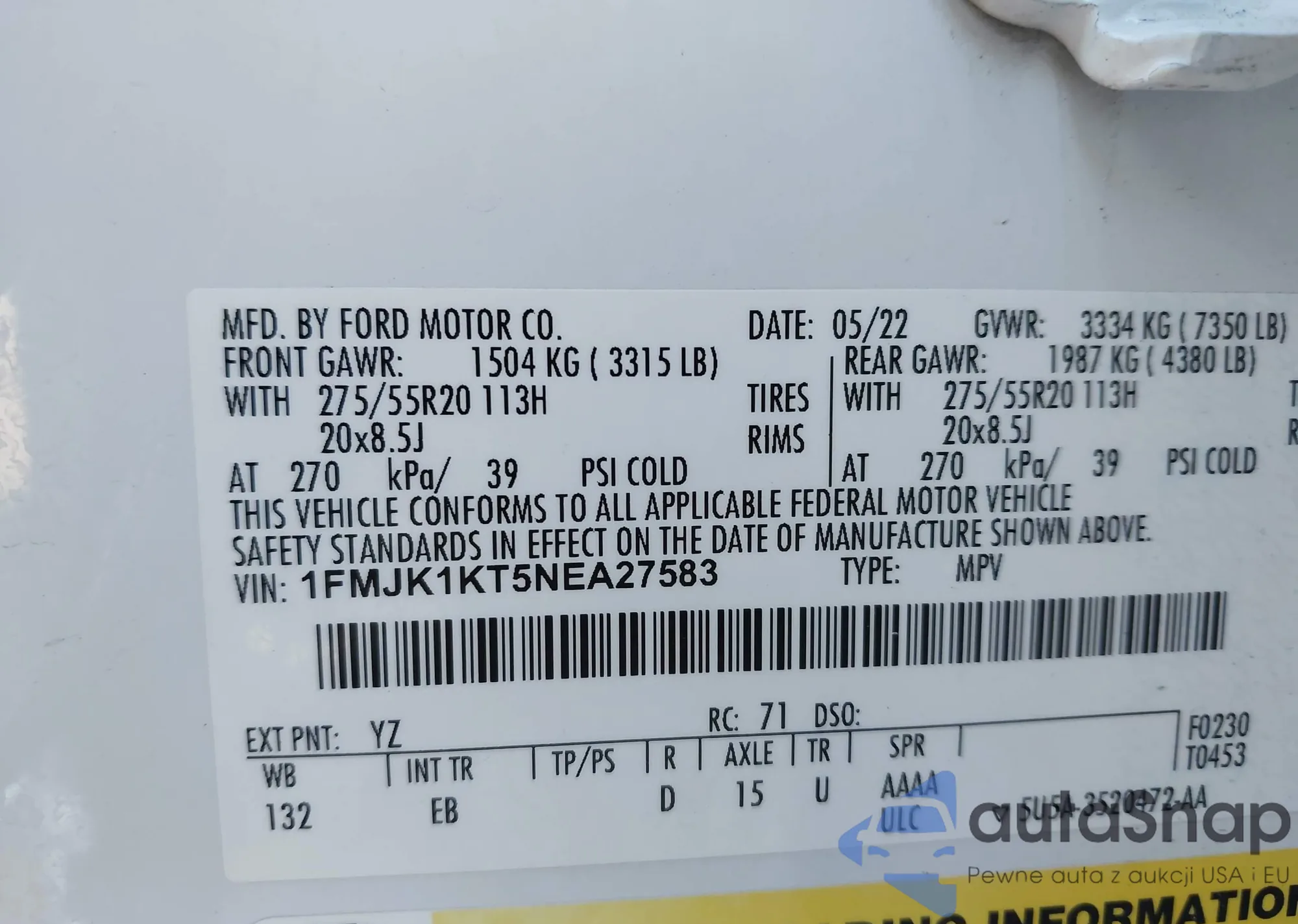 VIN: 1FMJK1KT5NEA27583