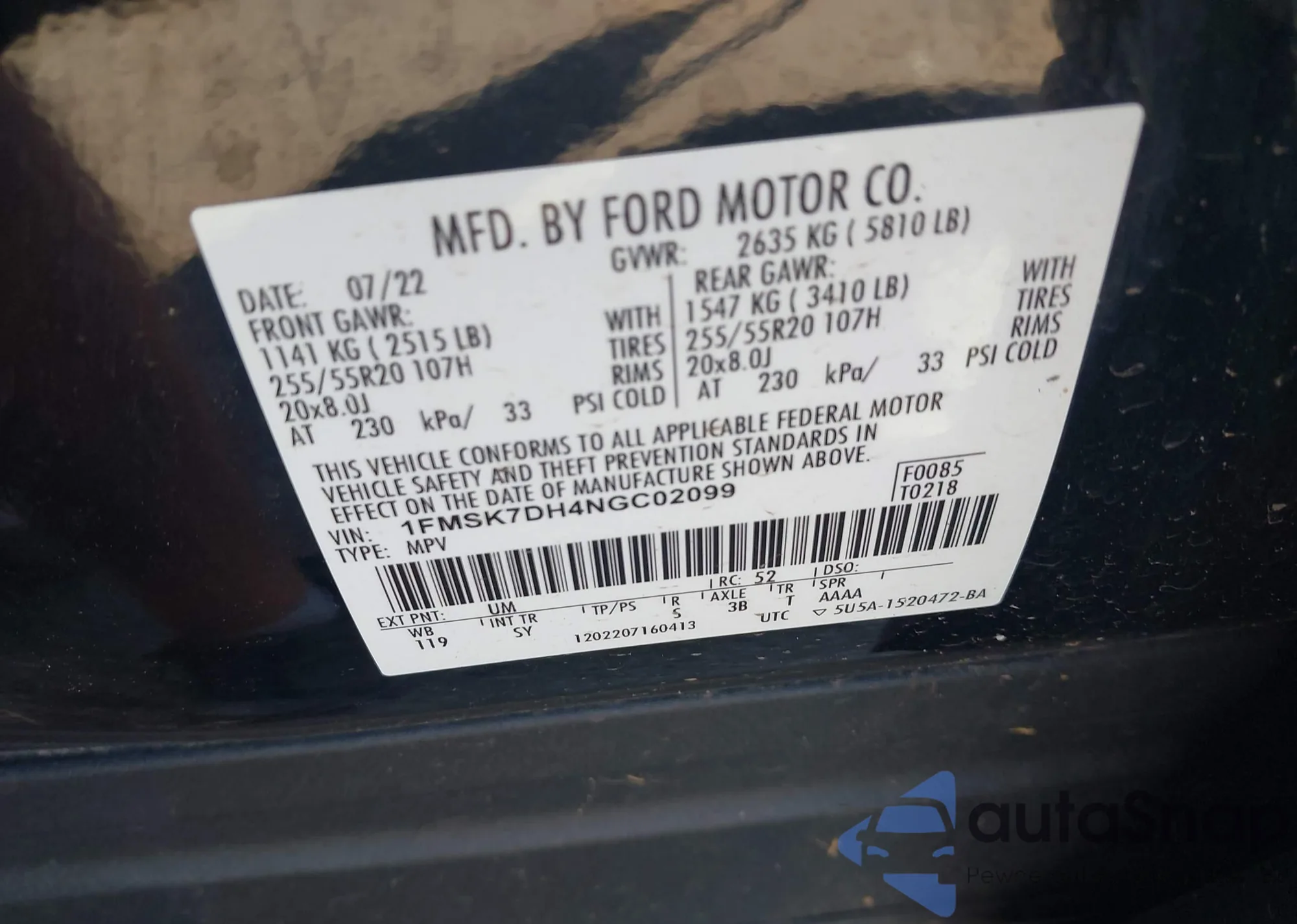 VIN: 1FMSK7DH4NGC02099