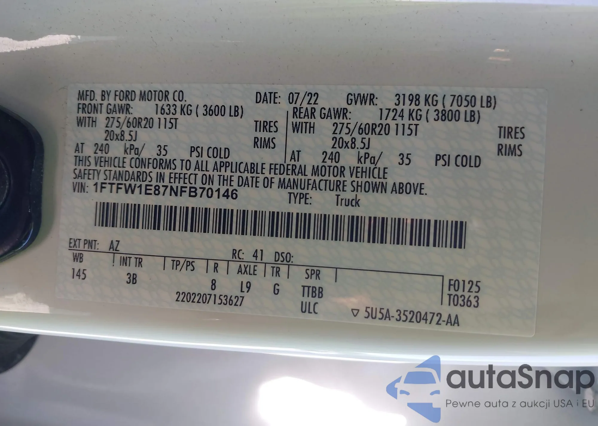VIN: 1FTFW1E87NFB70146