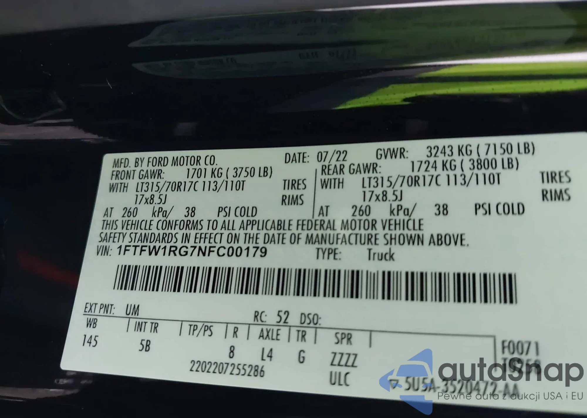 VIN: 1FTFW1RG7NFC00179