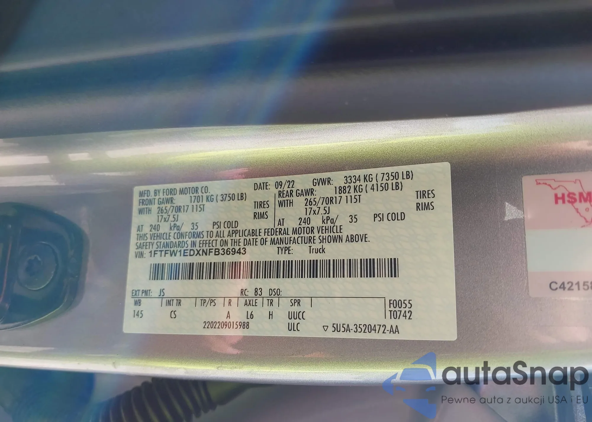 1FTFW1EDXNFB36943 IAAI