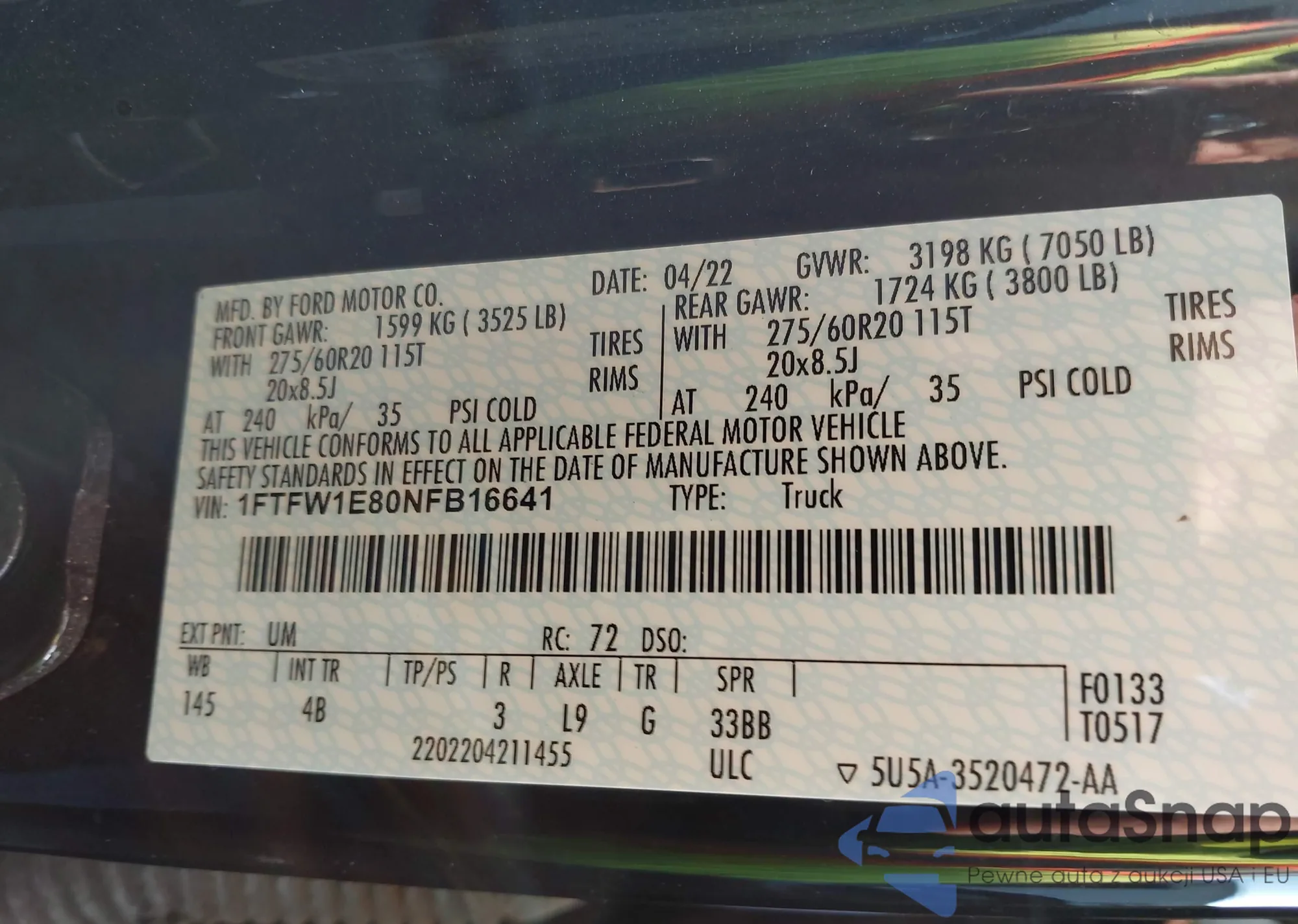 VIN: 1FTFW1E80NFB16641