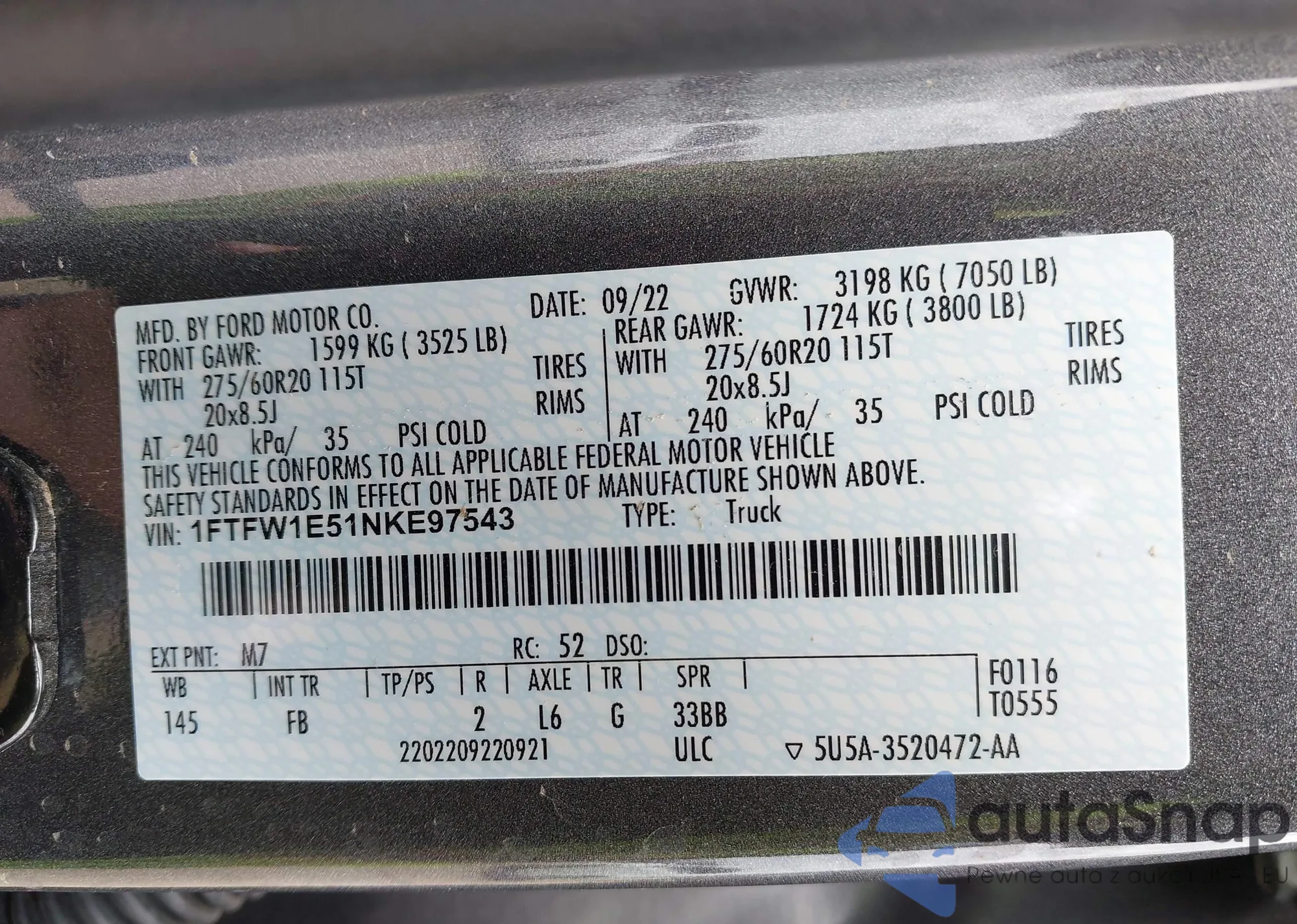 VIN: 1FTFW1E51NKE97543