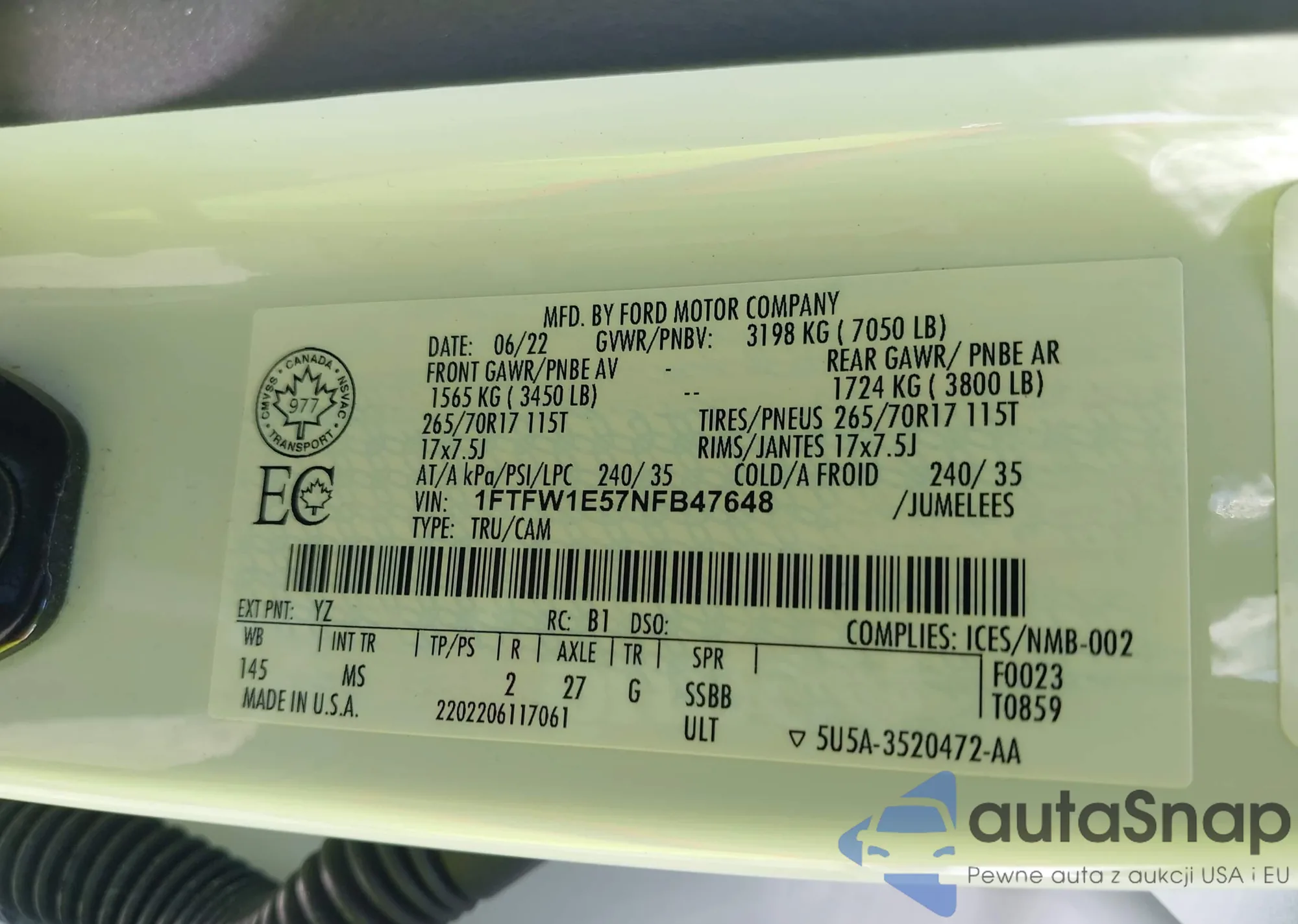 VIN: 1FTFW1E57NFB47648