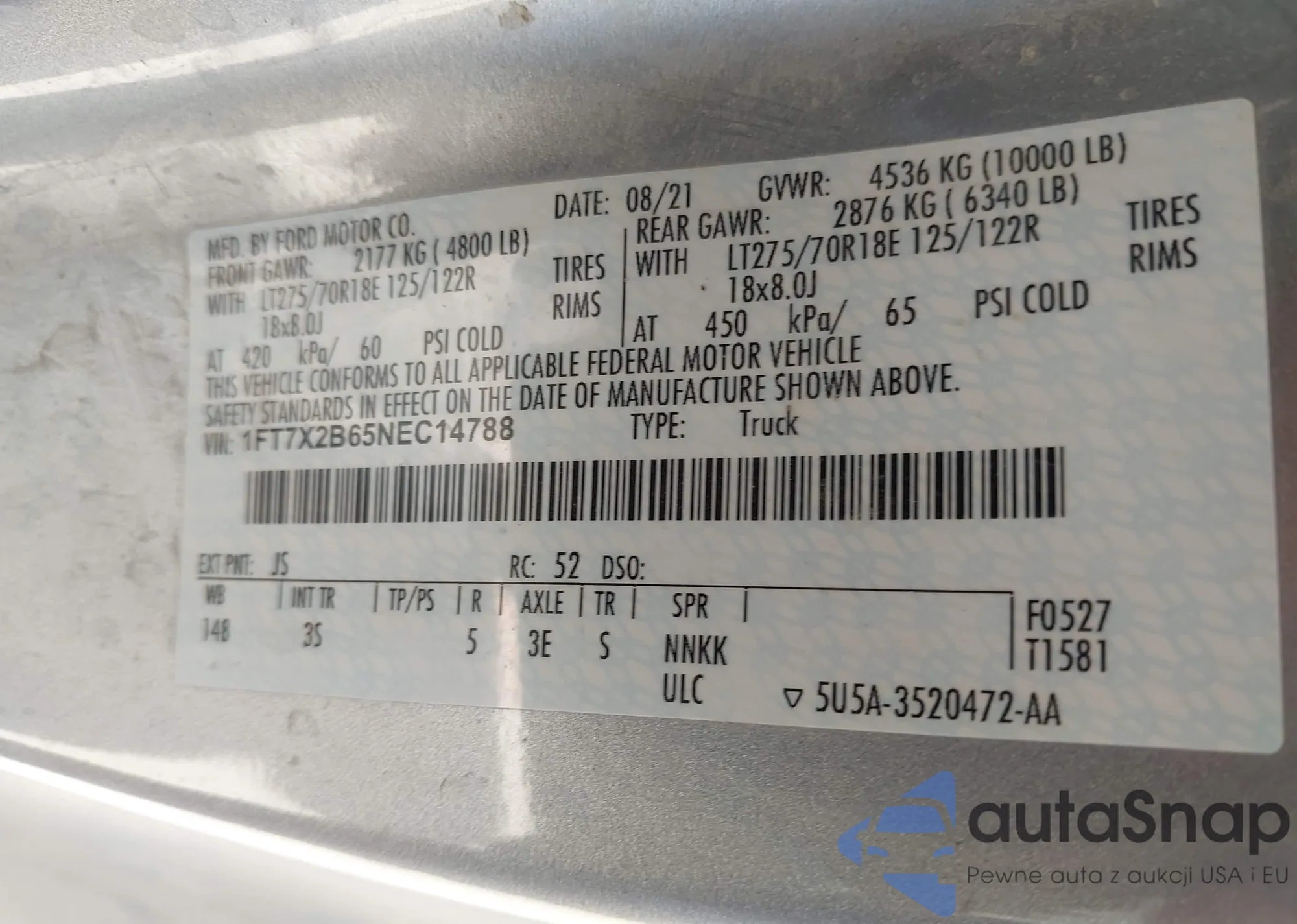 VIN: 1FT7X2B65NEC14788