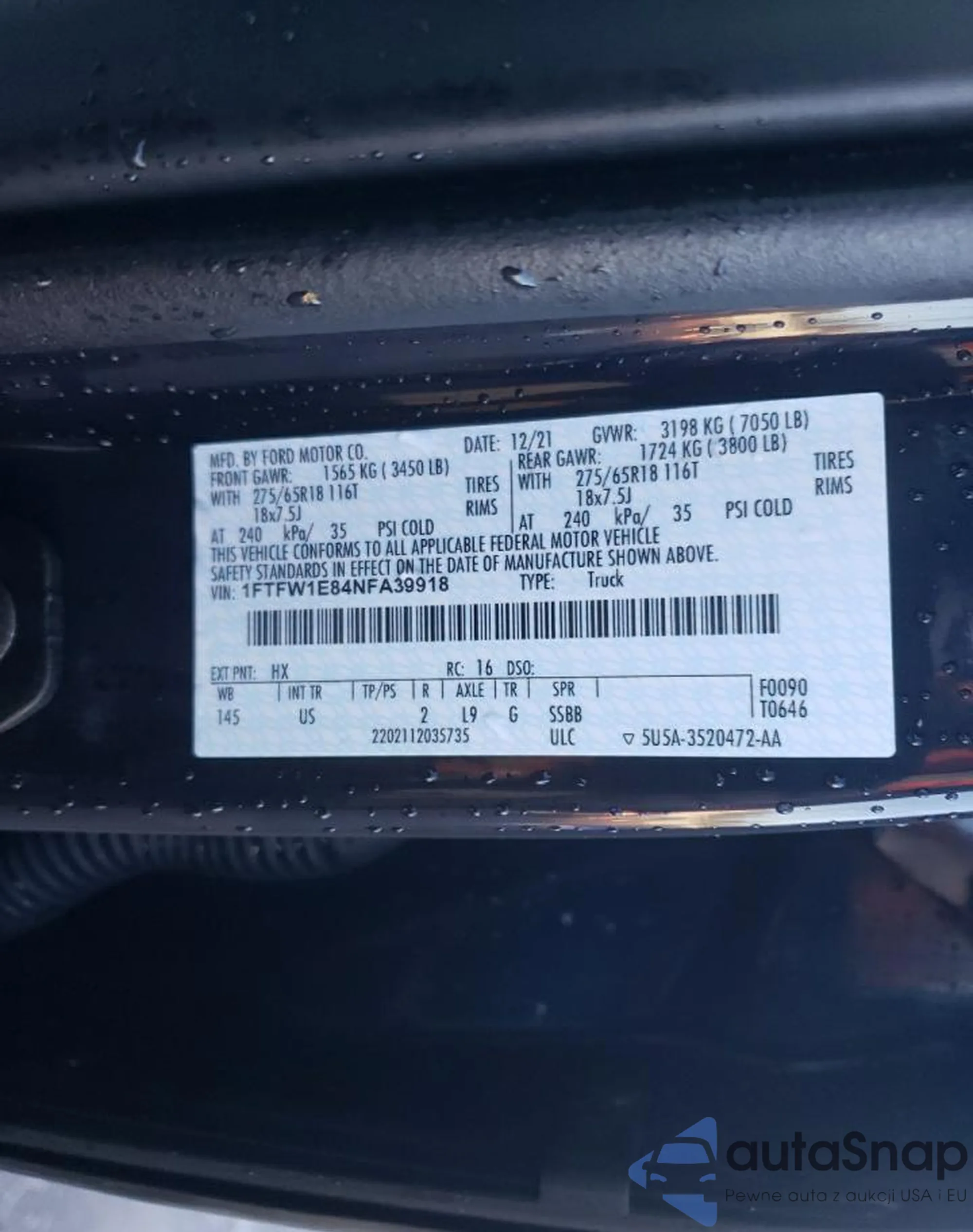 1FTFW1E84NFA39918 COPART