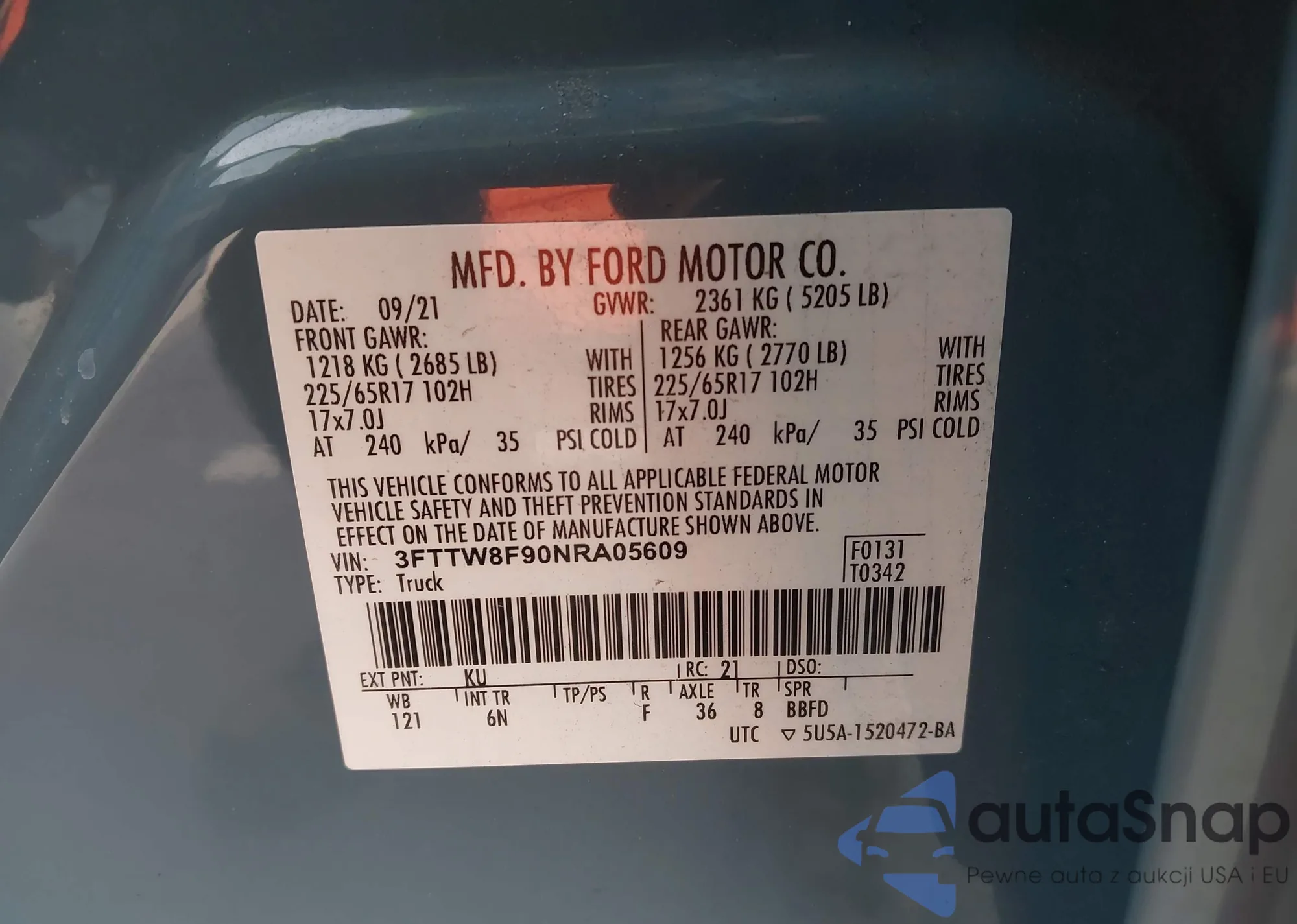 Samochód Ford Maverick 2022 (VIN 3FTTW8F90NRA05609) nie był wcześniej licytowany. Dokumenty są czyste, przebieg odpowiada lub jest niższy niż średnia rynku. Sprzedaje go firma ubezpieczeniowa – polecamy zakup. Dostawa do portu zajmie ok. 6–8 tygodni.