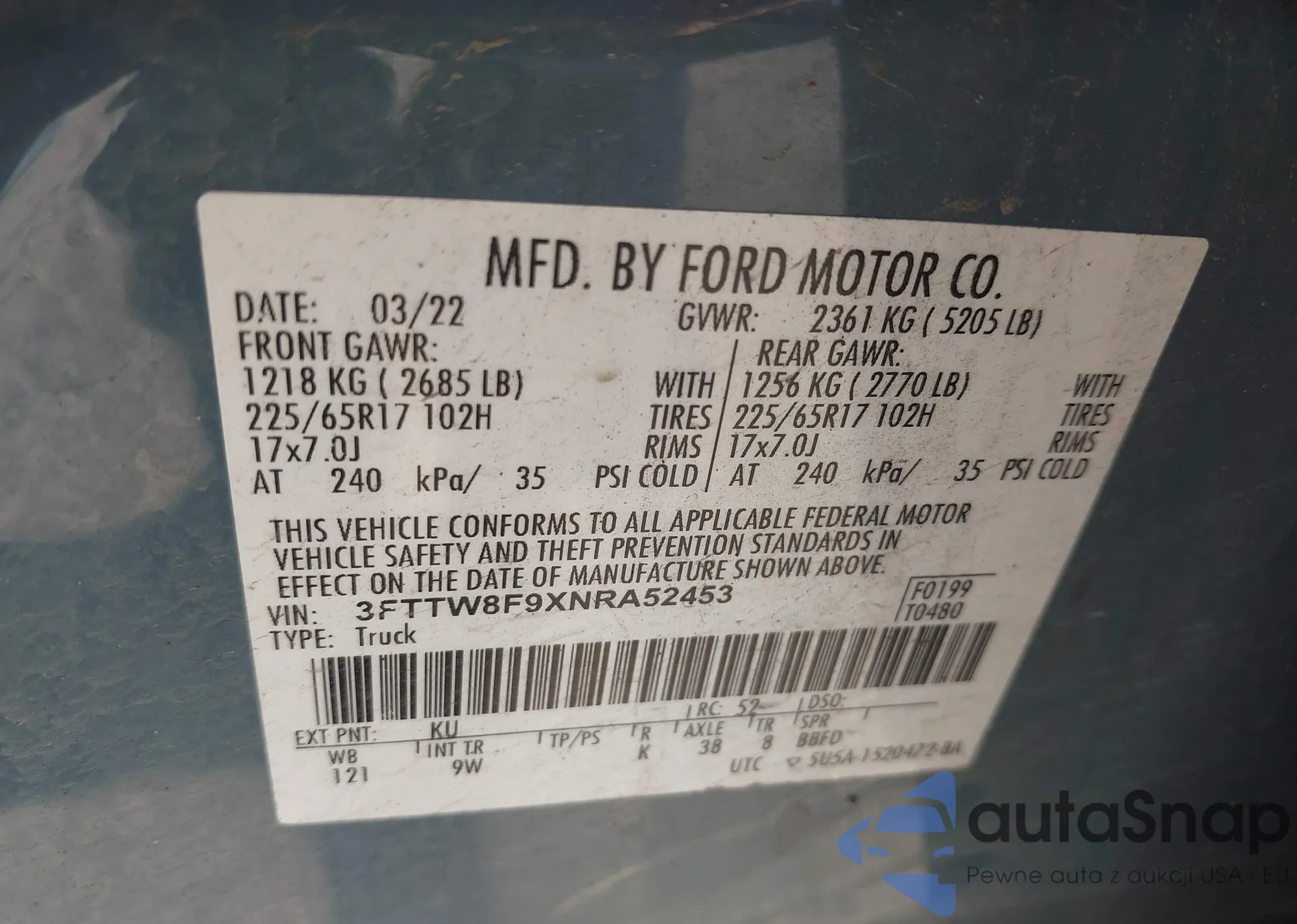 VIN: 3FTTW8F9XNRA52453