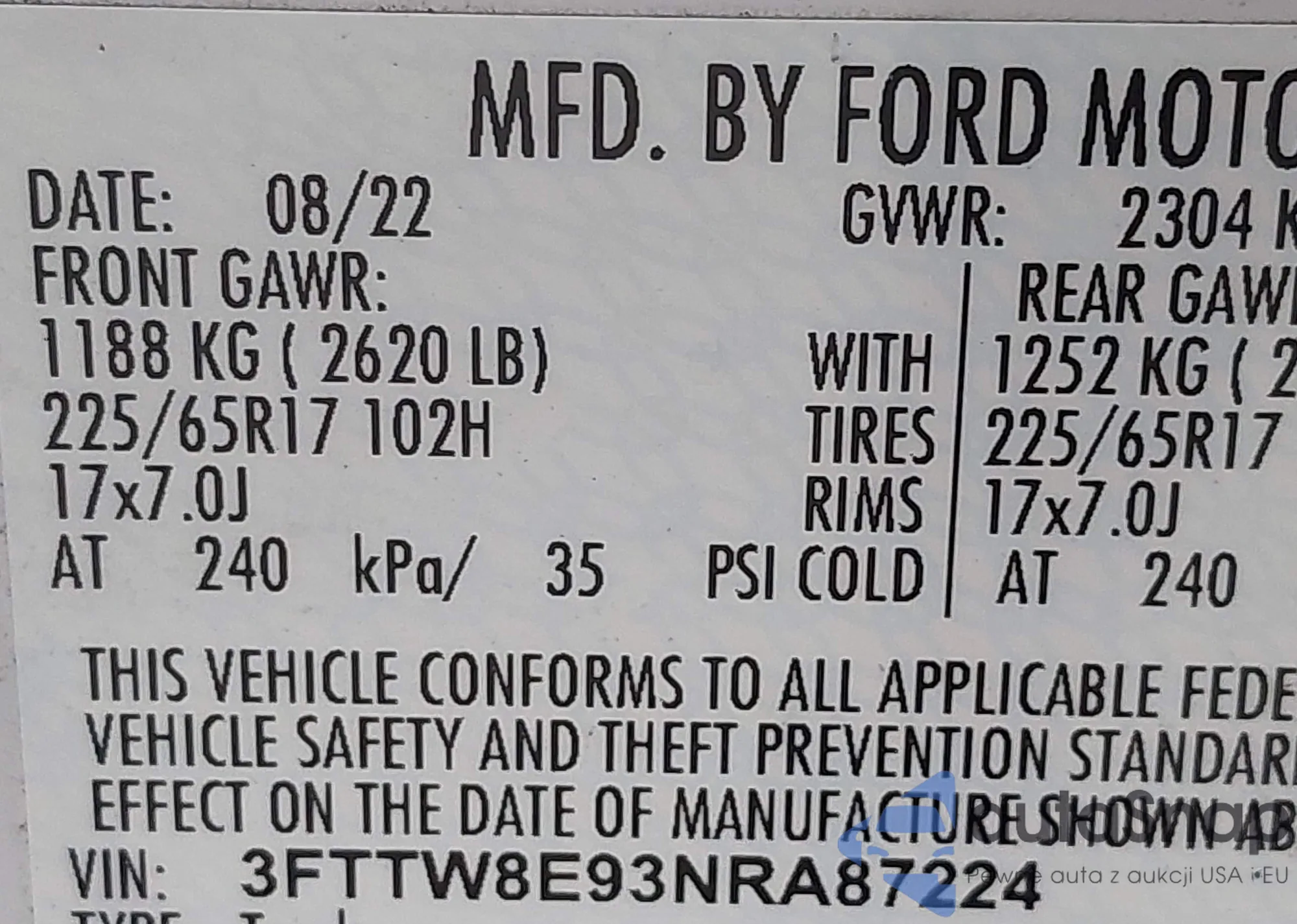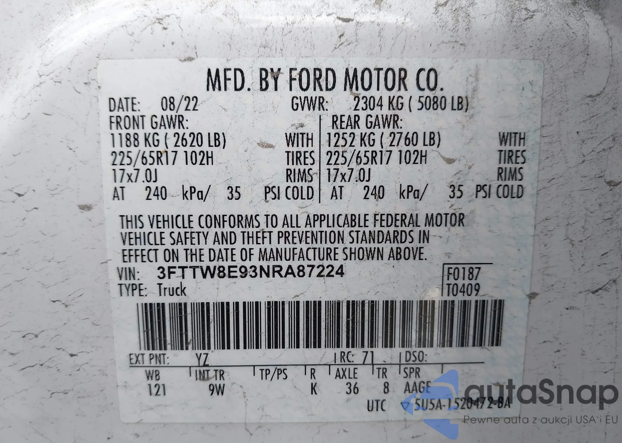 VIN: 3FTTW8E93NRA87224